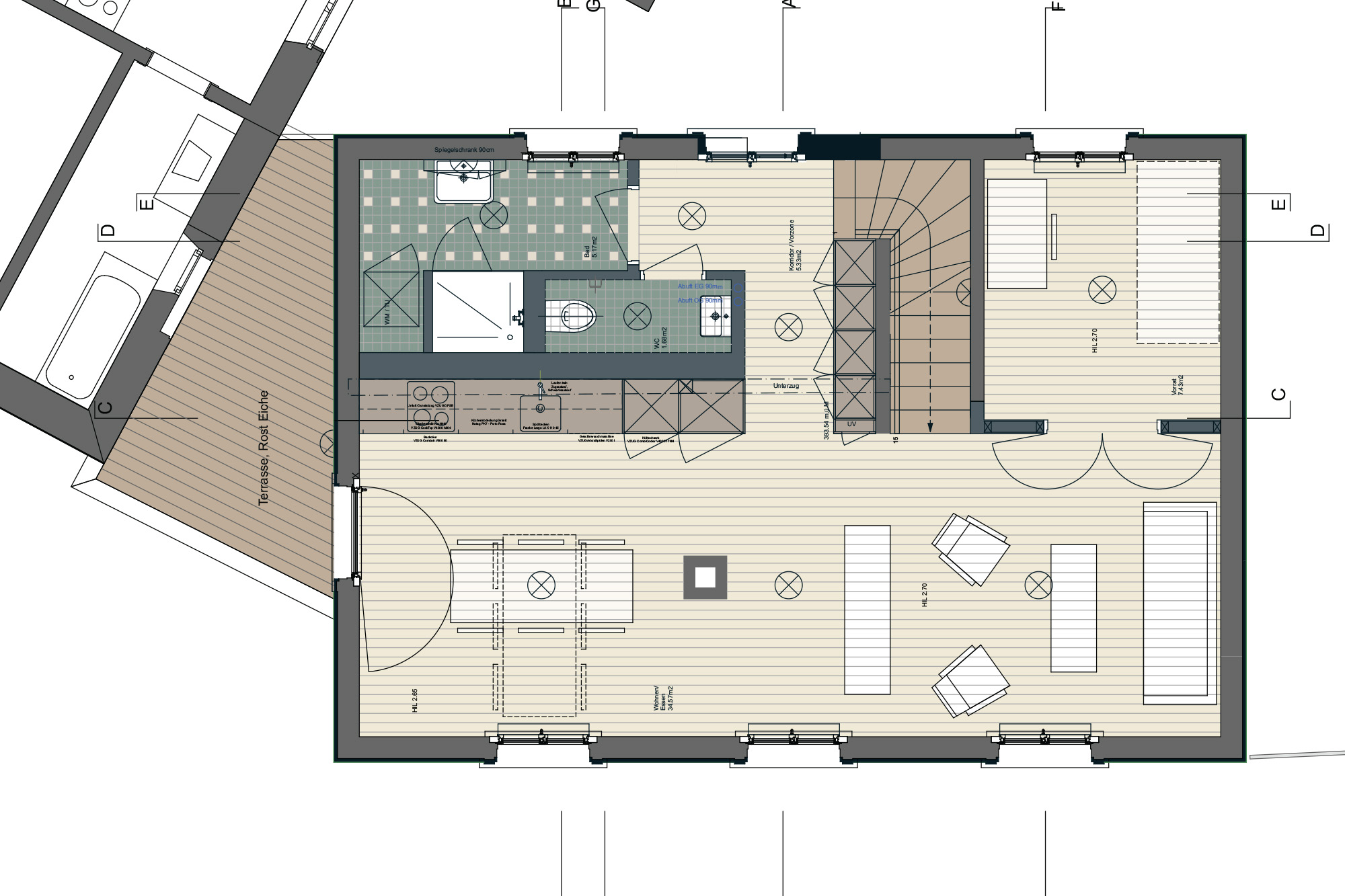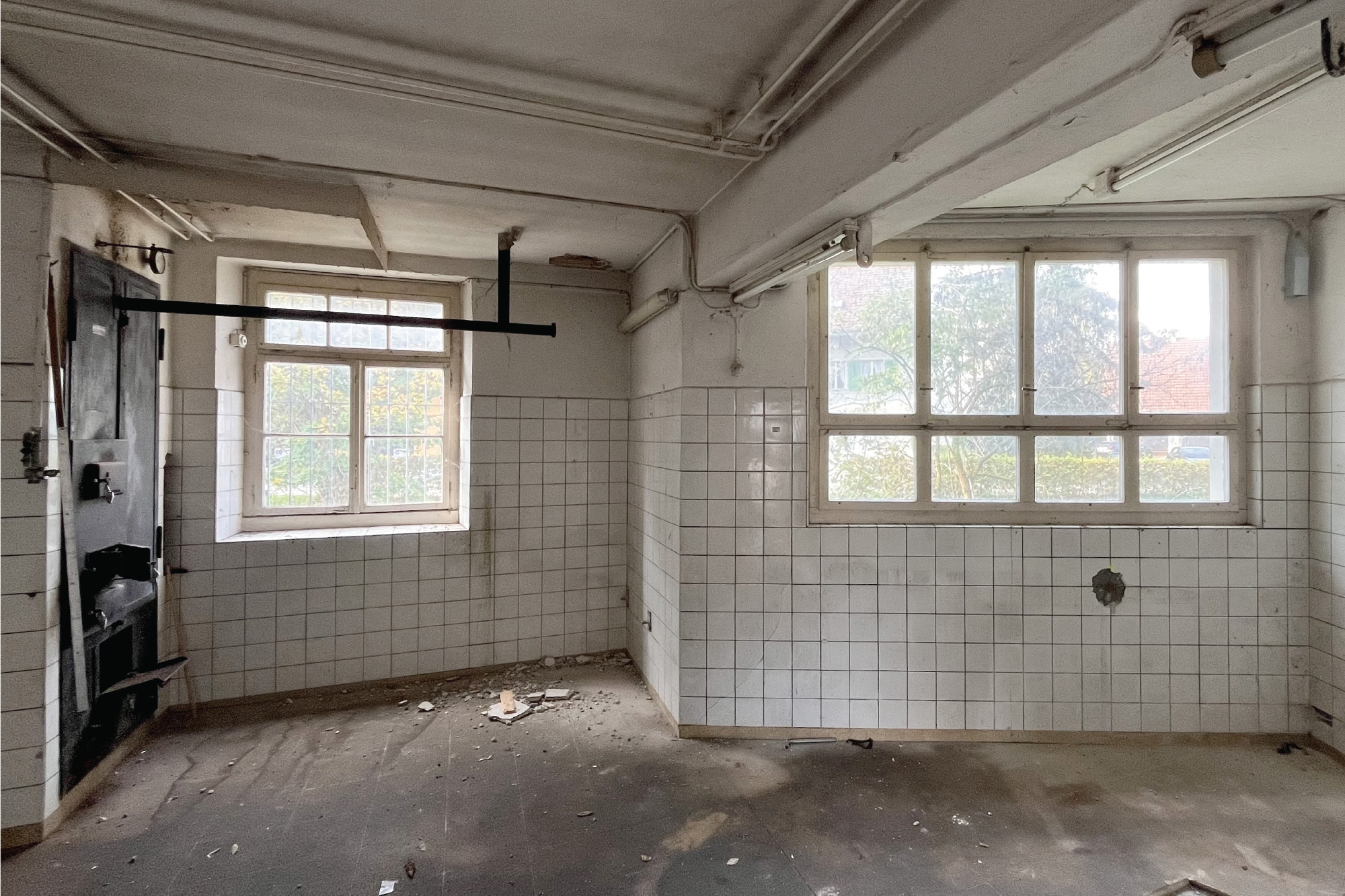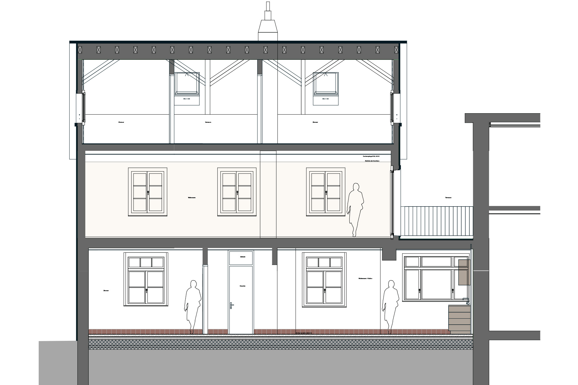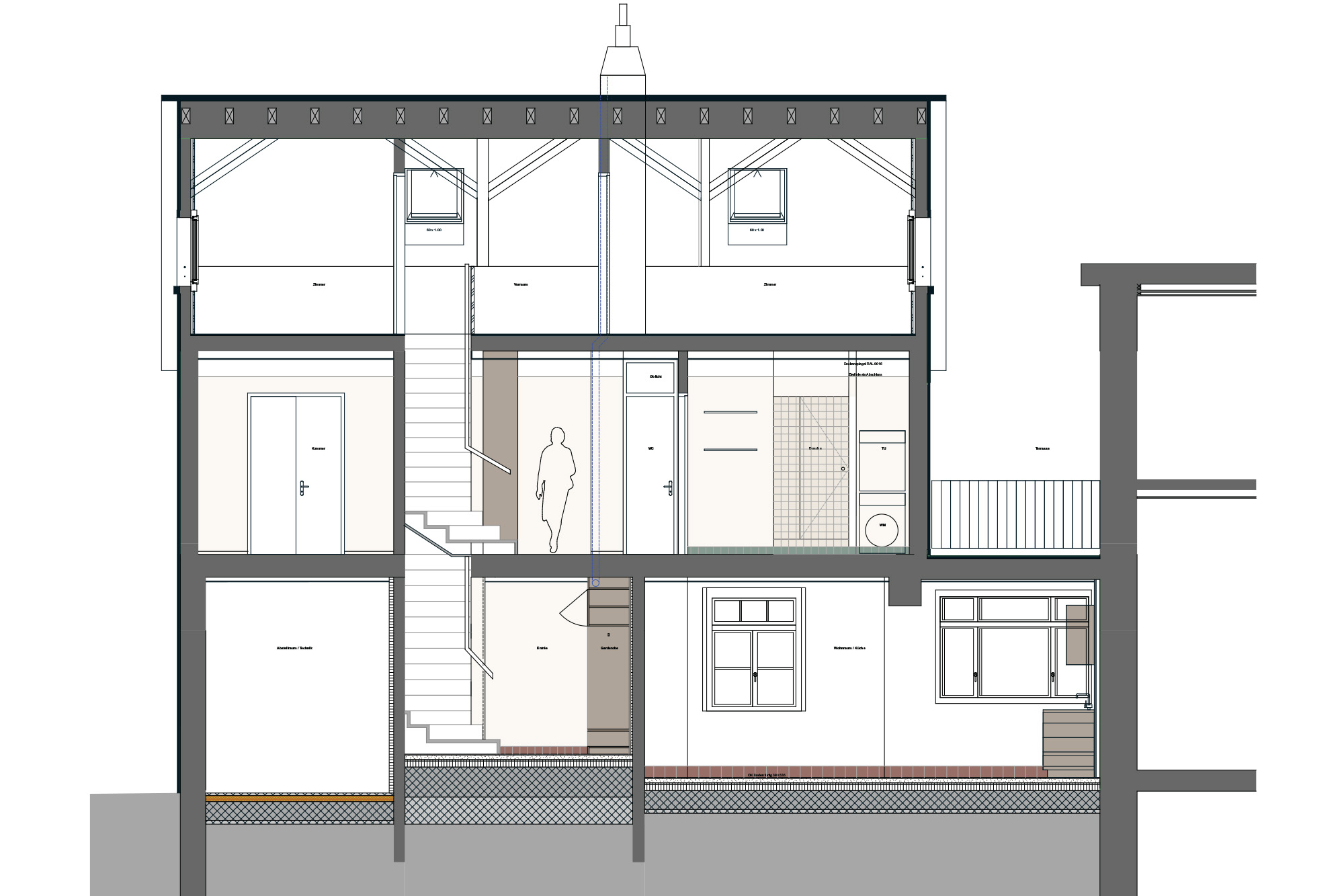 Das kommunal denkmalgeschützte Haus liegt im Zentrum des historischen Dorfkerns von Dietikon und sehr nahe an der Reppisch. Es wird integral denkmalpflegerisch instandgesetzt und in ein reines Wohnhaus mit Mietwohnungen überführt. Die ergdgeschossige Wohnung lässt über die Materialisierung/Farbgebung und dem erhaltenen Räucherofen Erinnerungen an die Wursträucherei aufkommen, die hier einstmals betrieben wurde. Die obere doppelgeschossige Wohnung hält sich in Materialität und Atmosphäre am ehemals hölzernen Charakter diese bäurischen Hauses und spielt im Obergeschoss einen grossen stützenfreien Wohnraum frei, was mit dem Tragwerk des Daches korrespondiert. Obergeschoss und Dachgeschoss waren einst stützenfrei. Die bestehende seitliche Terrasse zur Reppisch verbindet diese Wohnung mit dem lauschigen und ruhigen Aussenraum.