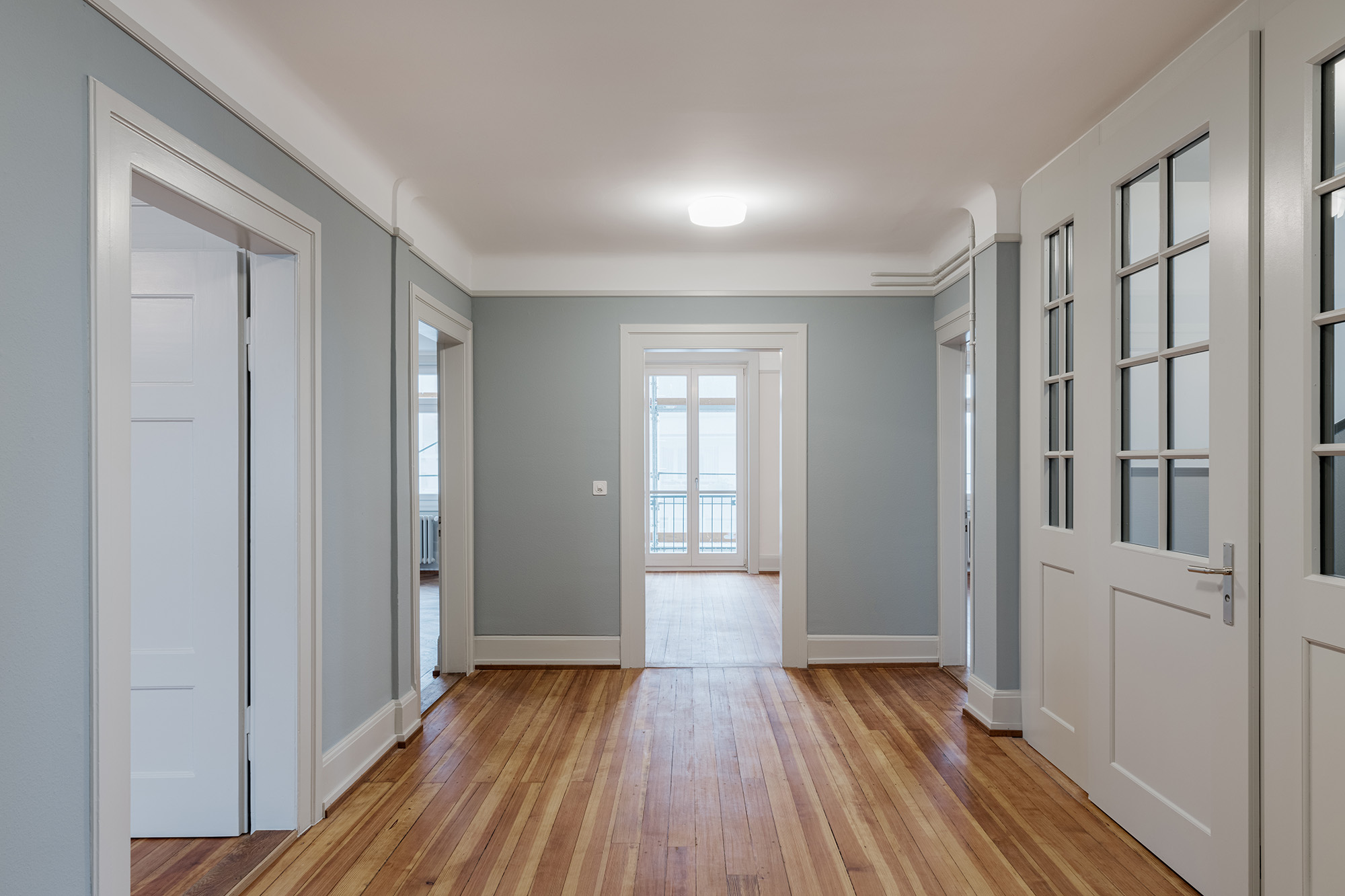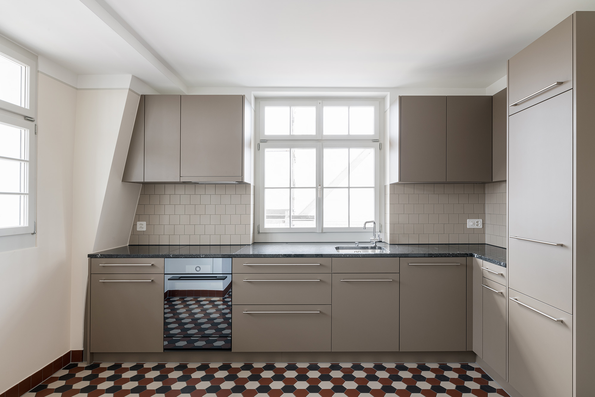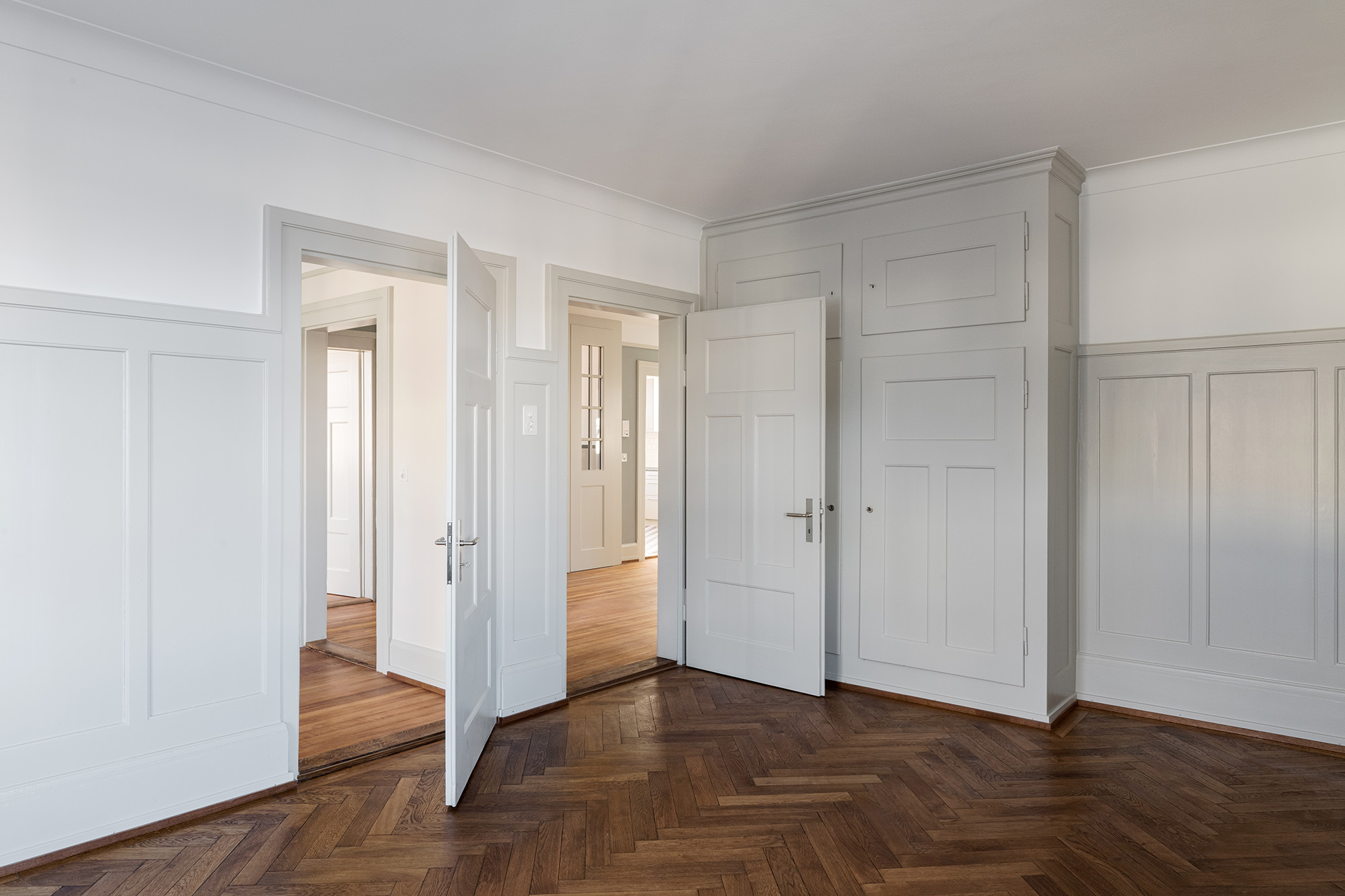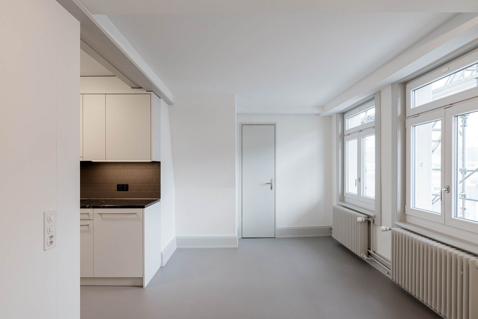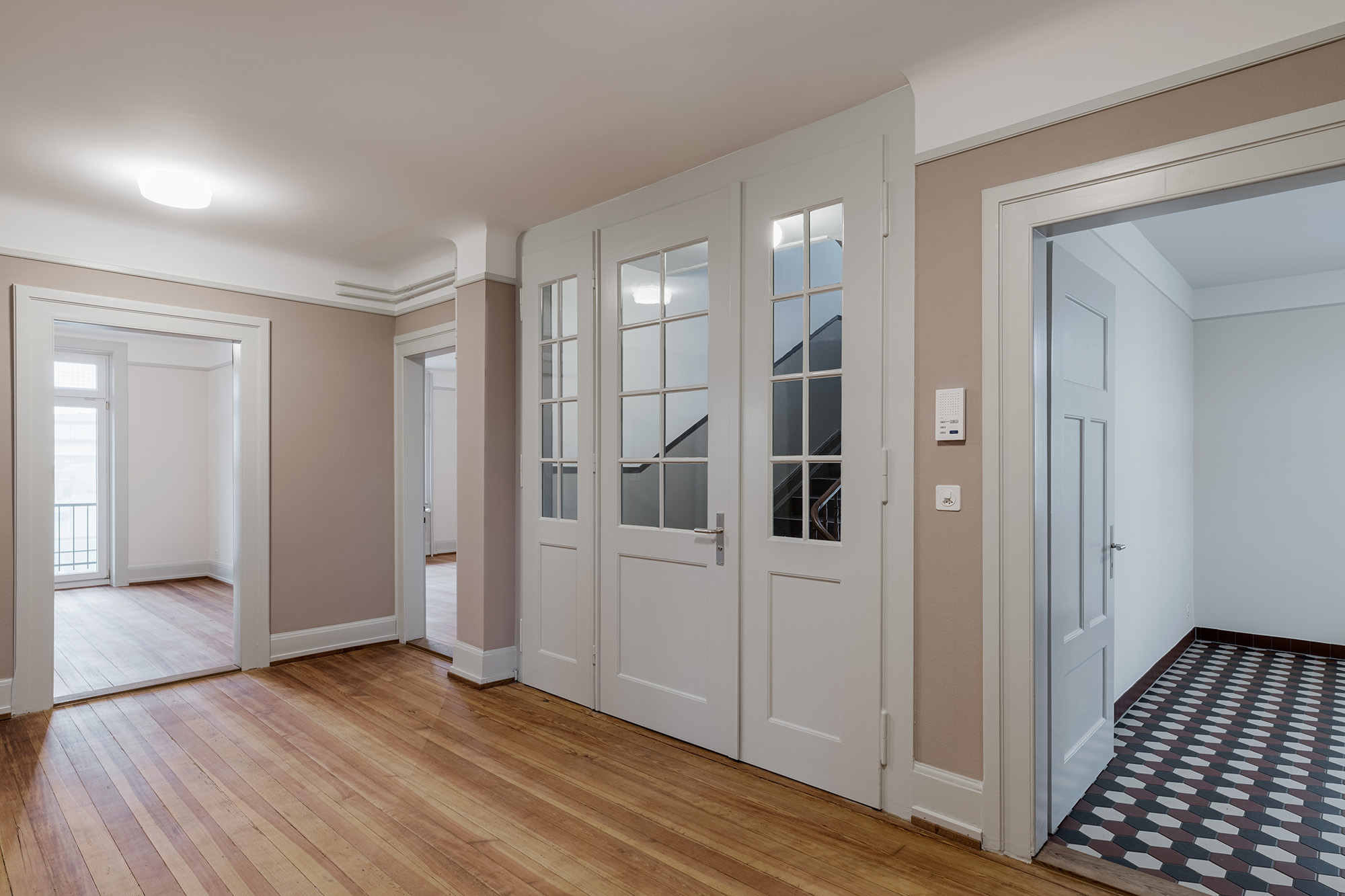 Selbstbewusst und identitätsstiftend steht der markante und denkmalgeschützte Bären seit 1910 als wichtiges Element am Platz vor dem Bahnhof Dietikon. Im Schweizer Heimatstil erbaut ist er vor Ort einer der wenigen Zeugen seiner Zeit. Im Zuge eines Eigentümerwechsels wurden die 5 grosszügigen Geschosswohnungen über dem Restaurant denkmalpflegerisch renoviert, wobei das oberste Geschoss mit ehemals Mansardenzimmern einen neuen Grundriss erhielt. Grosse Teile des historischen Bestandes an Böden und Decken konnten wieder hervorgeholt werden. Farbgebung und Materialisierung lehnen sich an den historischen Bestand an. Gleichzeitig wurde das gesamte Haus vom Keller bis zum Estrich situativ und behutsam so erdbebenertüchtigt, dass die Massnahmen sowohl kostengünstig als auch unsichtbar sind.