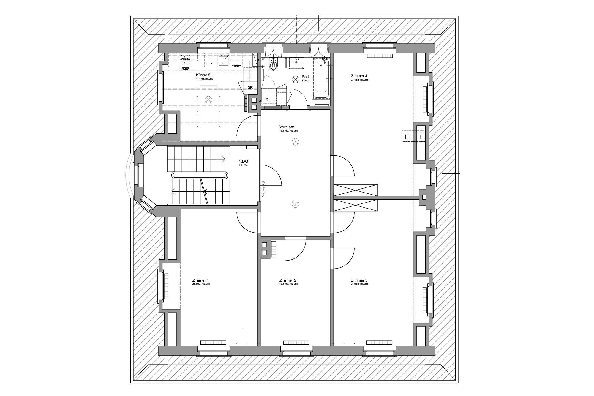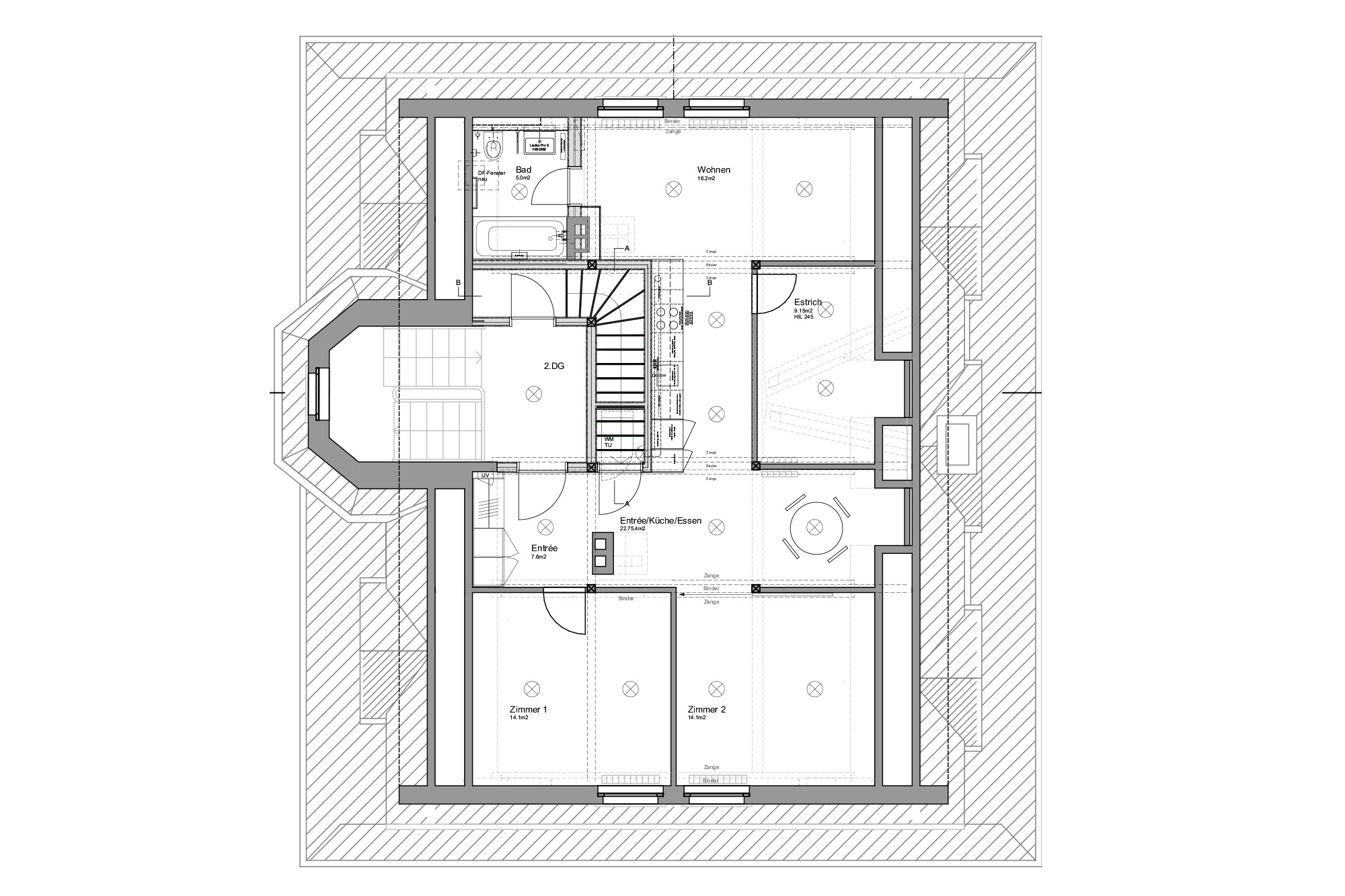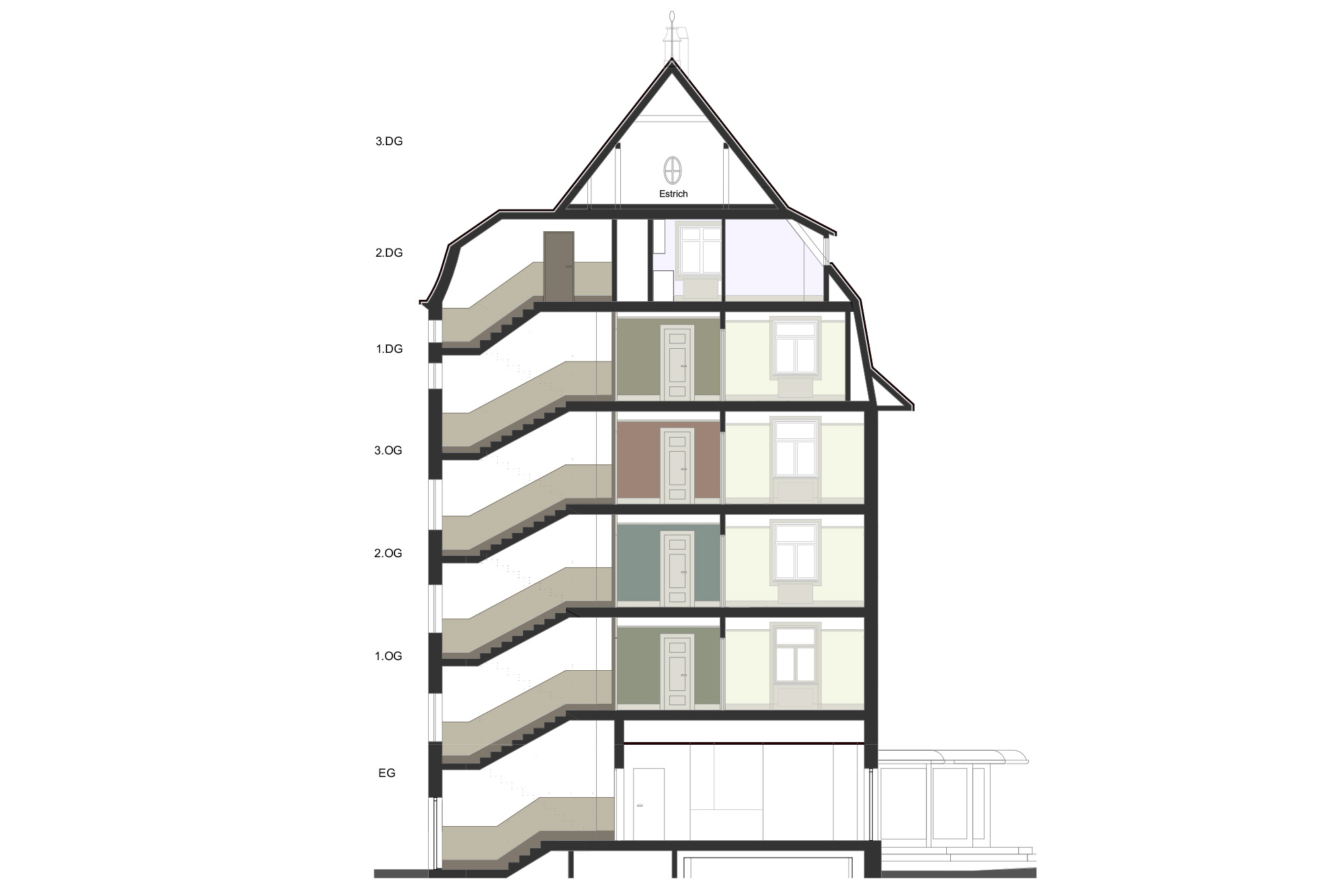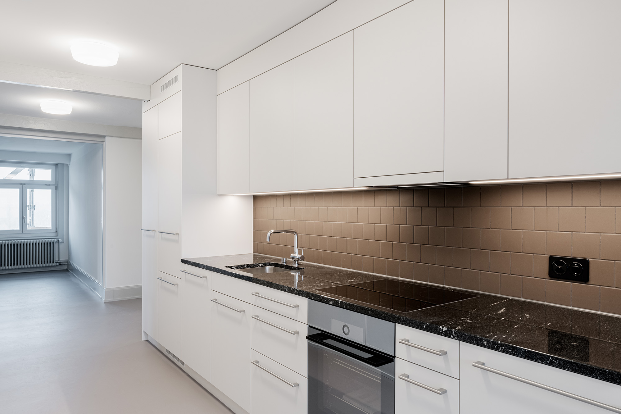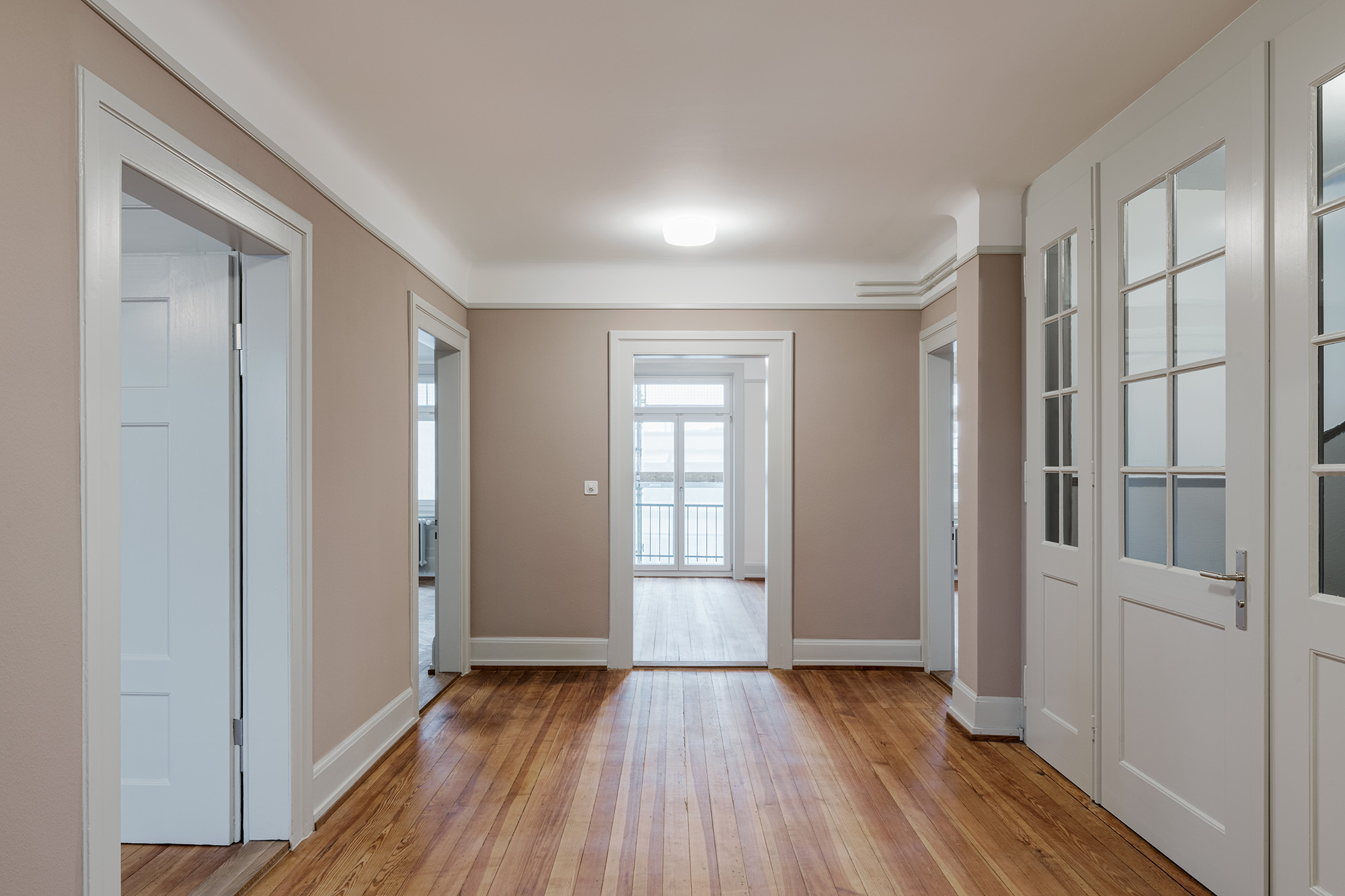 Selbstbewusst und identitätsstiftend steht der markante und denkmalgeschützte Bären seit 1910 als wichtiges Element am Platz vor dem Bahnhof Dietikon. Im Schweizer Heimatstil erbaut ist er vor Ort einer der wenigen Zeugen seiner Zeit. Im Zuge eines Eigentümerwechsels wurden die 5 grosszügigen Geschosswohnungen über dem Restaurant denkmalpflegerisch renoviert, wobei das oberste Geschoss mit ehemals Mansardenzimmern einen neuen Grundriss erhielt. Grosse Teile des historischen Bestandes an Böden und Decken konnten wieder hervorgeholt werden. Farbgebung und Materialisierung lehnen sich an den historischen Bestand an. Gleichzeitig wurde das gesamte Haus vom Keller bis zum Estrich situativ und behutsam so erdbebenertüchtigt, dass die Massnahmen sowohl kostengünstig als auch unsichtbar sind.