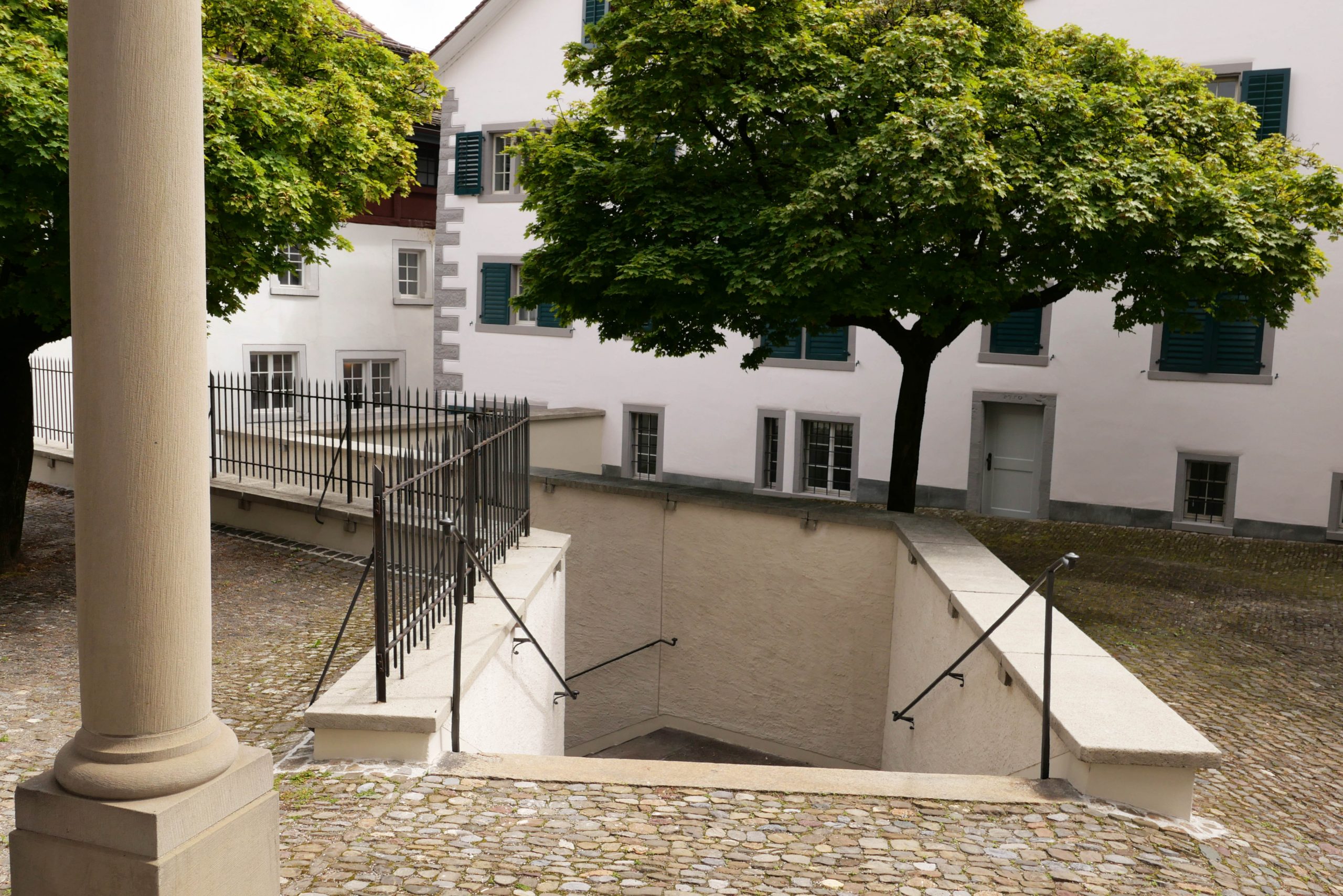 Die historische Stützmauer musste wegen grossflächigen Schäden denkmalpflegerisch renoviert werden. Der Befund hat einen sehr heterogenen Stützmaueraufbau hervorgebracht. Die Oberflächen wurden saniert, angeglichen und rein mineralisch verputzt und mit einer Schlemme überzogen, welche auch als Graffitischutz funktioniert.