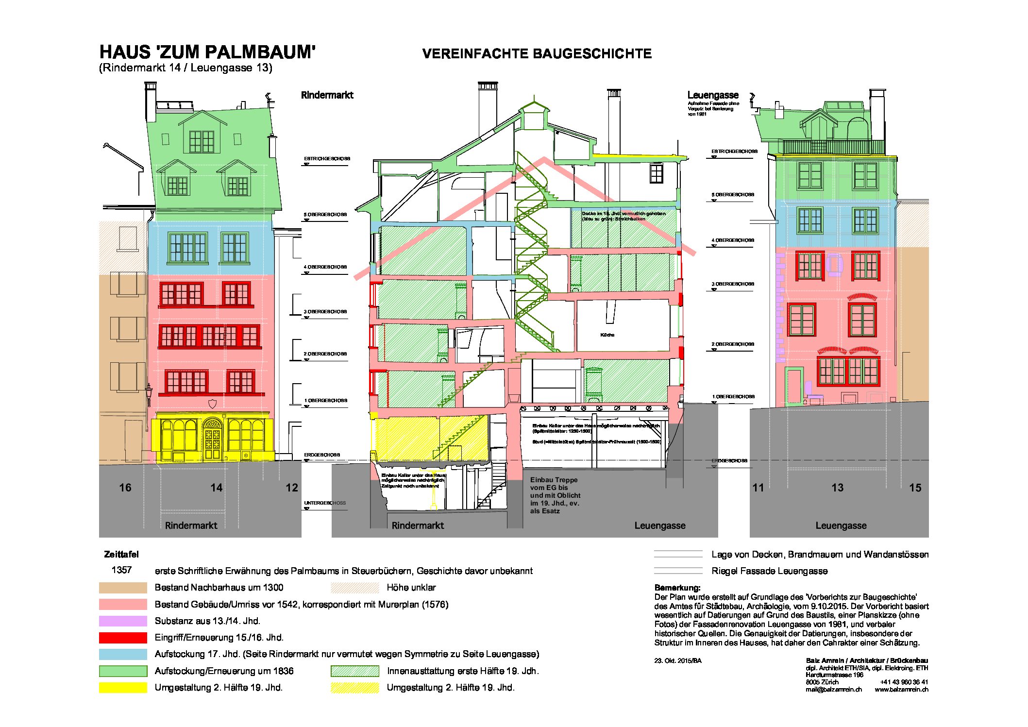 Das Haus zum Palmbaum am Rindermarkt gehört zu den sehr alten Gebäuden der Zürcher Altstadt. Es ist integral denkmalgeschützt. Die ältesten heute bekannten Bauteile stammen aus dem 12./13. Jahrhundert. Grosse Teile der Einbauten sind im Empire-Stil ausgeführt. Das Haus wurde bis anhin ausschliesslich mit historischen Kachelöfen beheizt. Im Nachgang einer umfangreichen Recherche am Bestand wurde eine zentrale Gasheizung eingebaut und die Ladenräume im Erdgeschoss renoviert.