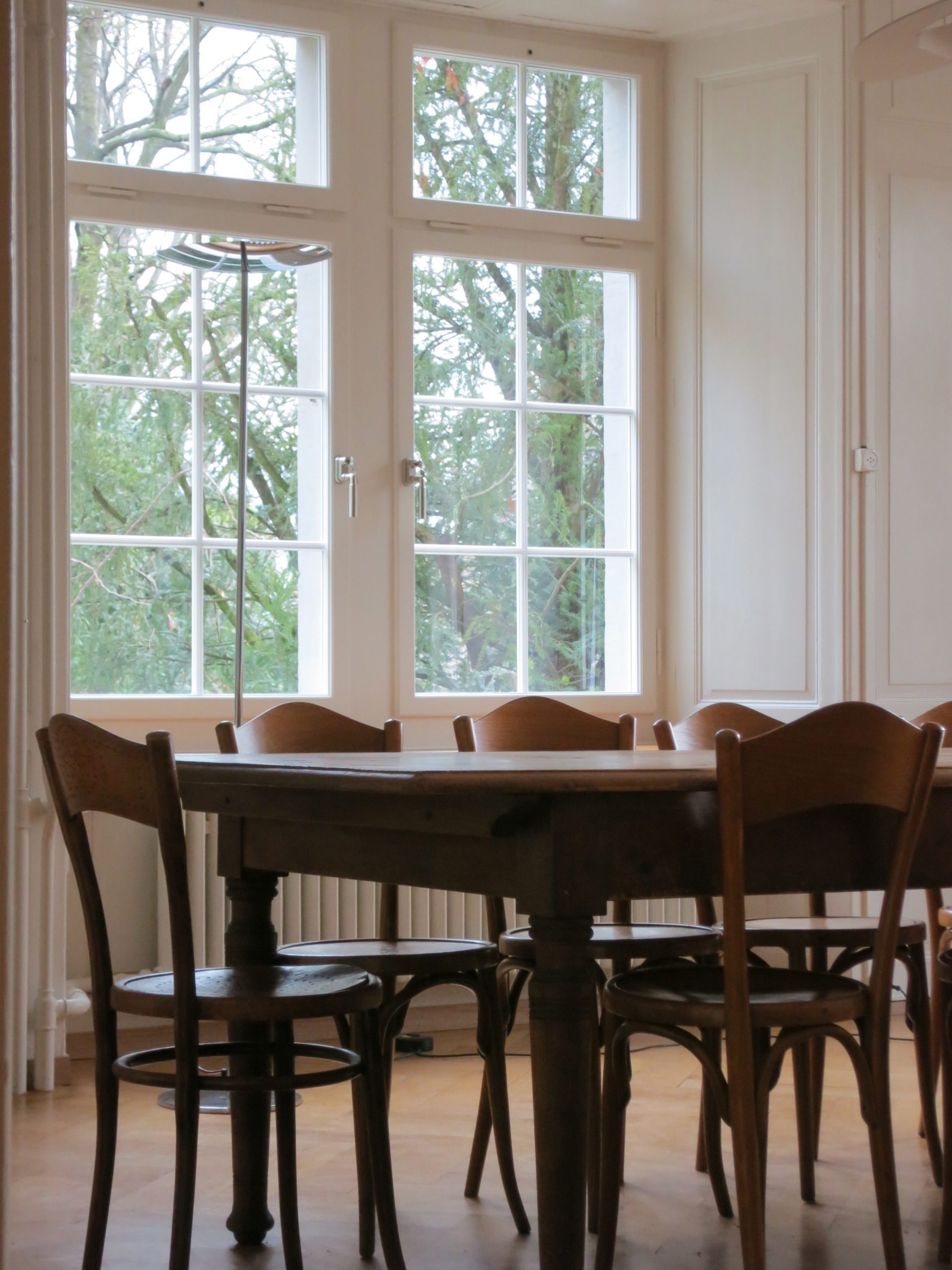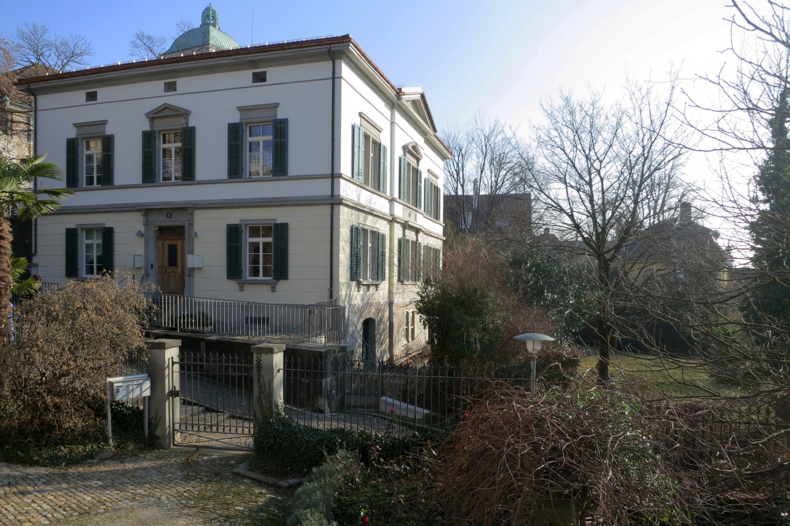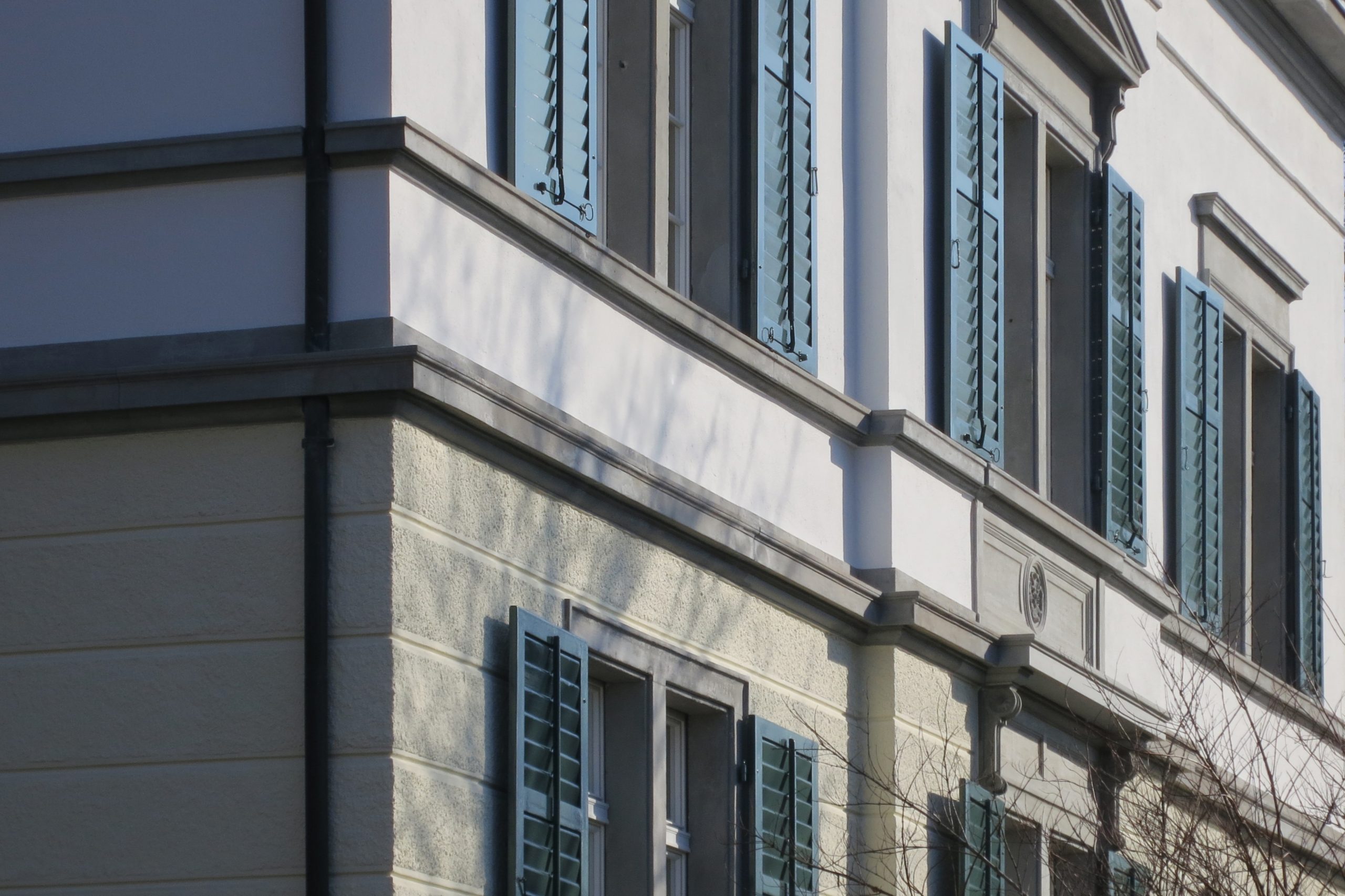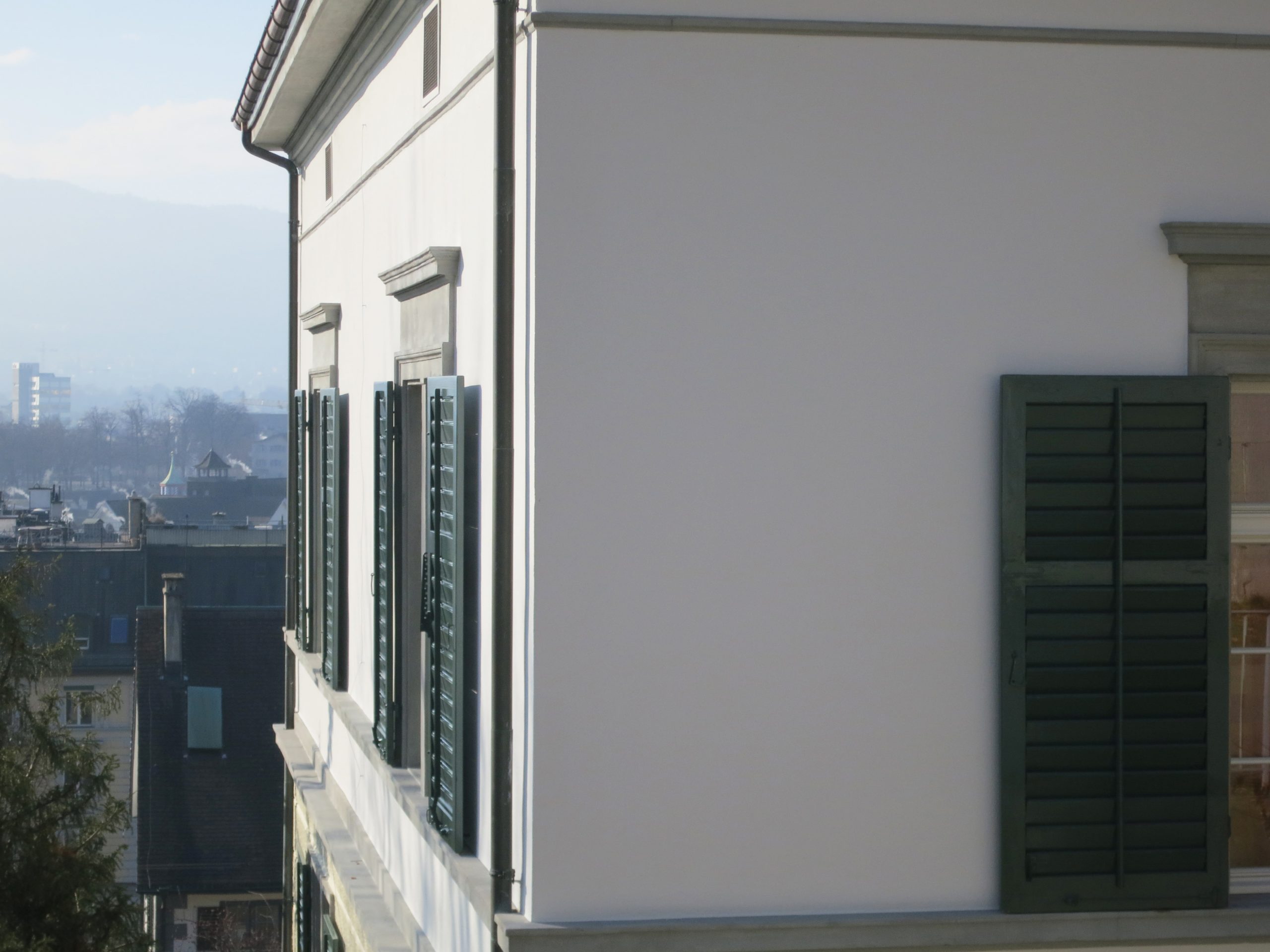 Das repräsentative Kirchgemeindehaus mit Baujahr 1863 und integral erhaltener Substanz wurde aussen komplett und sorgfältig denkmalpflegerisch instand gesetzt und saniert. Die Farbgebung lehnt sich an die Bauzeit an, ohne diese zu kopieren. Das Haus wurde elektrisch und EDV-mässig auf zeitgemässen Standard gehoben und die Leitungen unsichtbar geführt. Totalersatz der Kanalisation. Bau unter Benutzung.