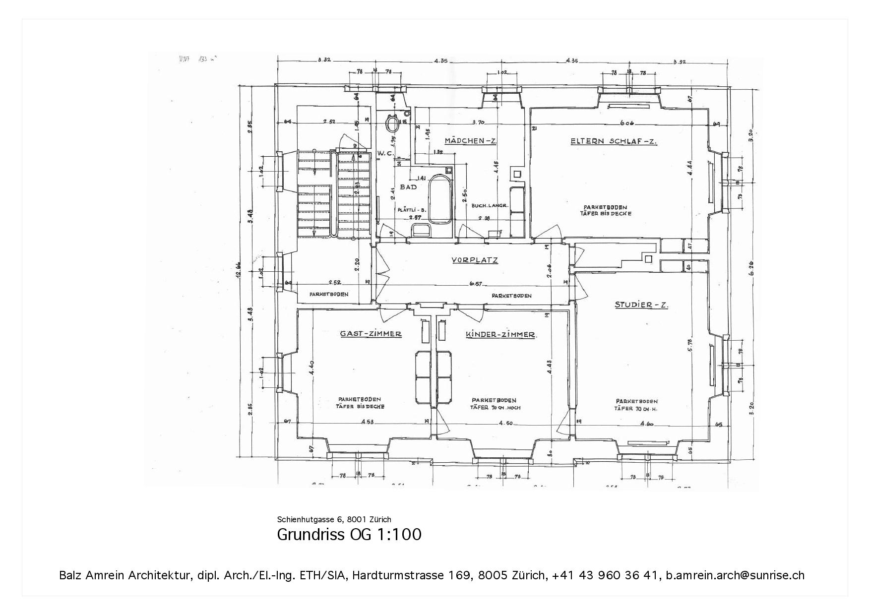 Das repräsentative Kirchgemeindehaus mit Baujahr 1863 und integral erhaltener Substanz wurde aussen komplett und sorgfältig denkmalpflegerisch instand gesetzt und saniert. Die Farbgebung lehnt sich an die Bauzeit an, ohne diese zu kopieren. Das Haus wurde elektrisch und EDV-mässig auf zeitgemässen Standard gehoben und die Leitungen unsichtbar geführt. Totalersatz der Kanalisation. Bau unter Benutzung.