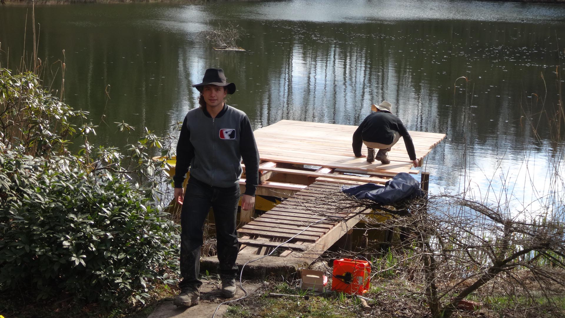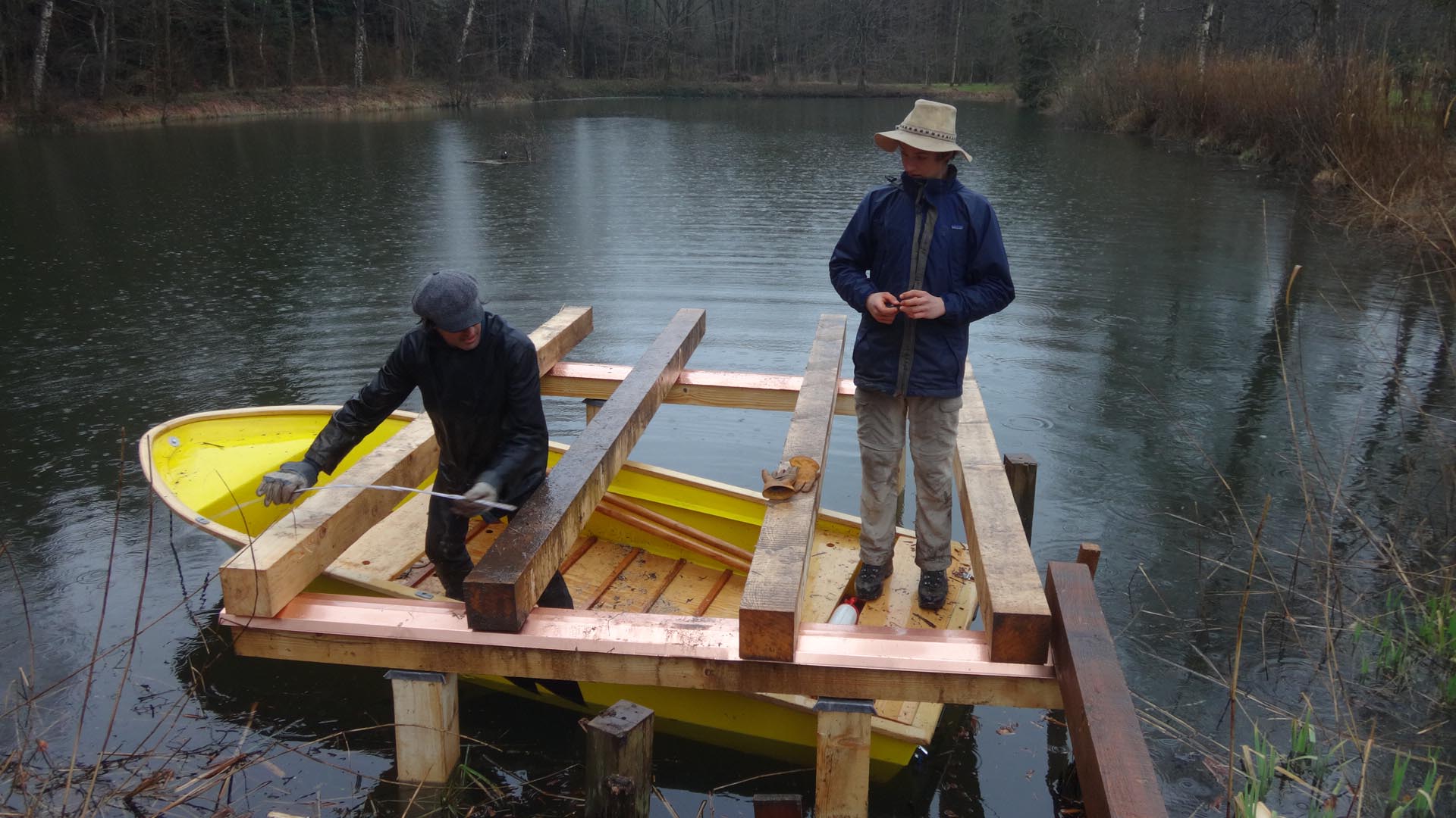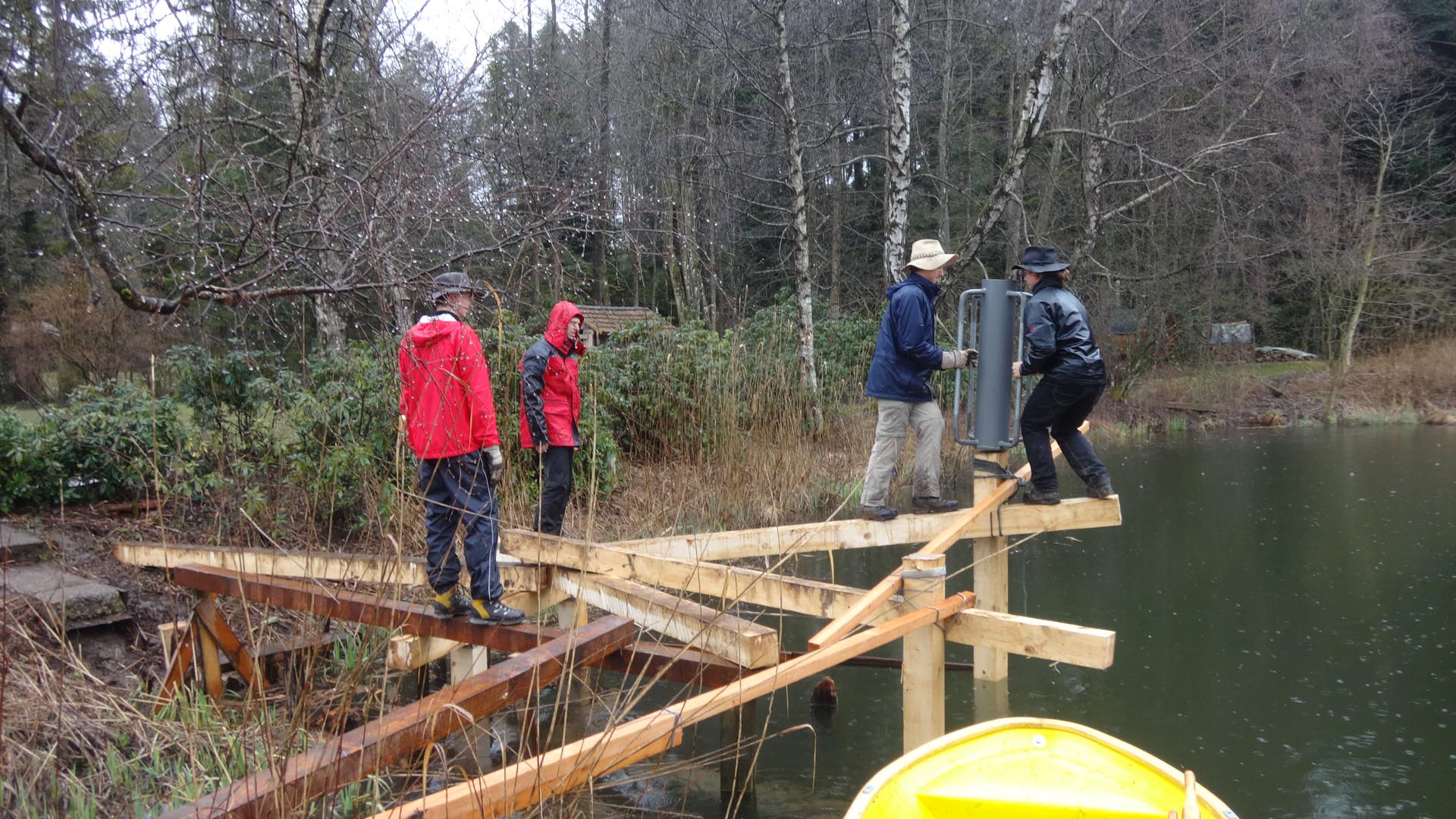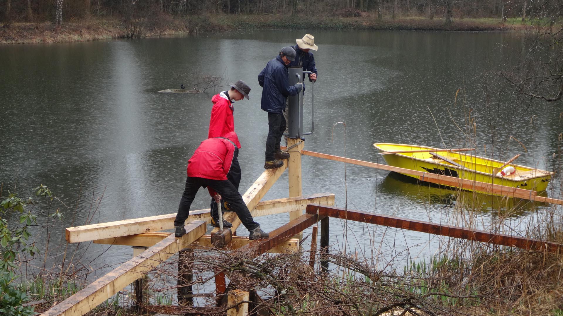 Wie vom Schilf eingeschnürt und zugleich gefasst führt der Ersatzsteg zur neuen Plattform am Privatweiher. Im Schutz des Schilfgürtels wird die grosszügige Plattform zum sommerlichen Zimmer über dem See und kann als geschütztes Sonnendeck oder Essbereich über dem Wasser genutzt werden.