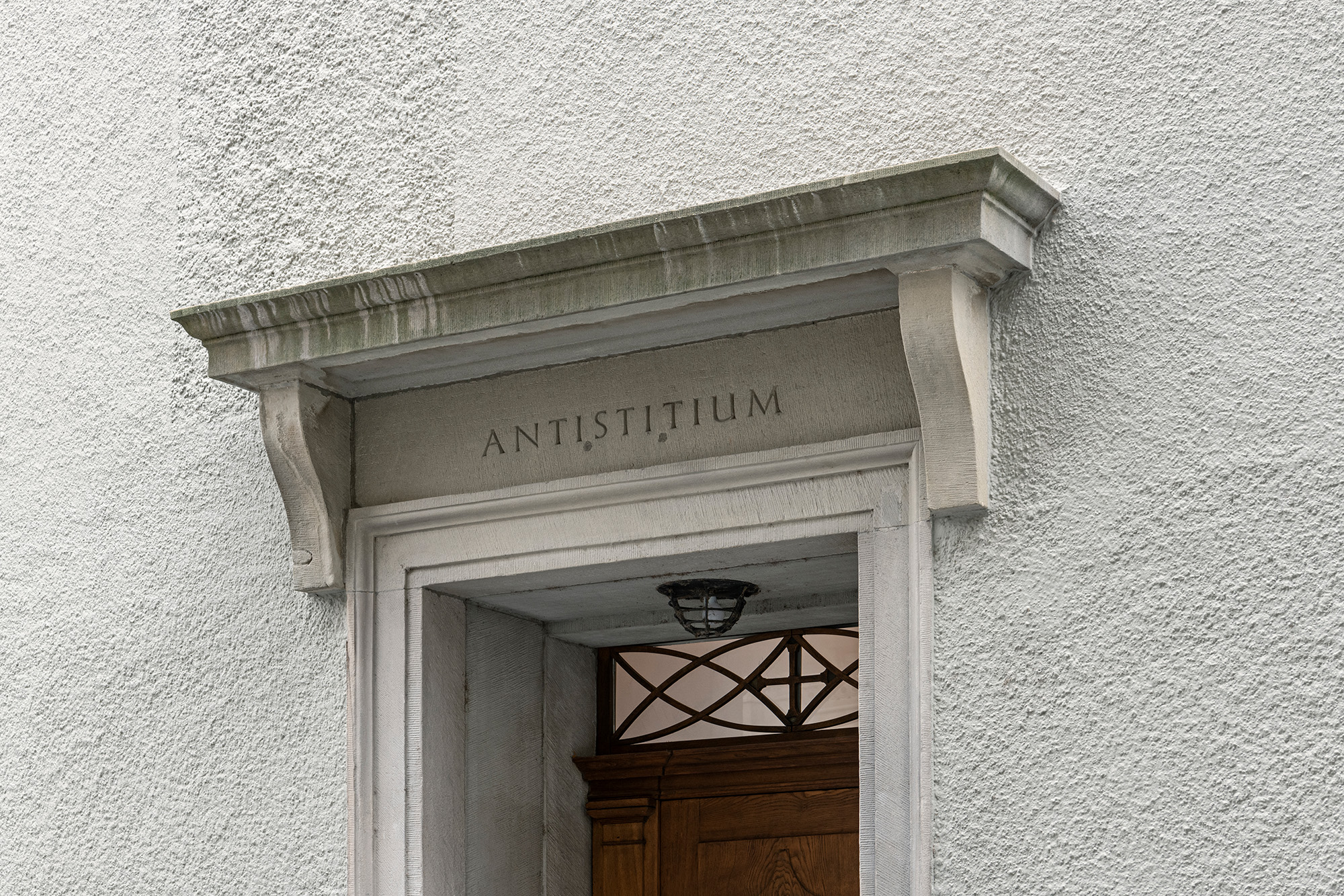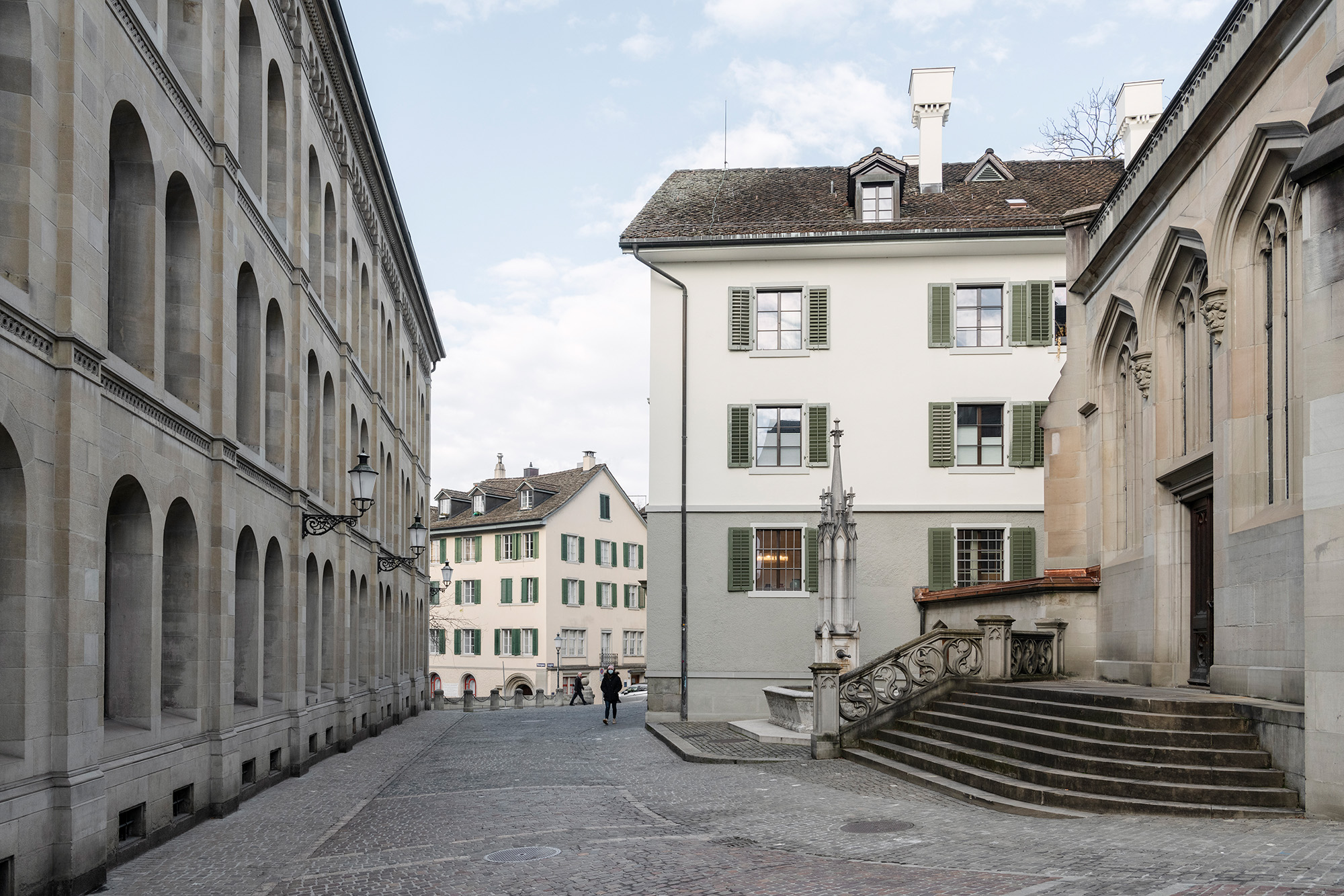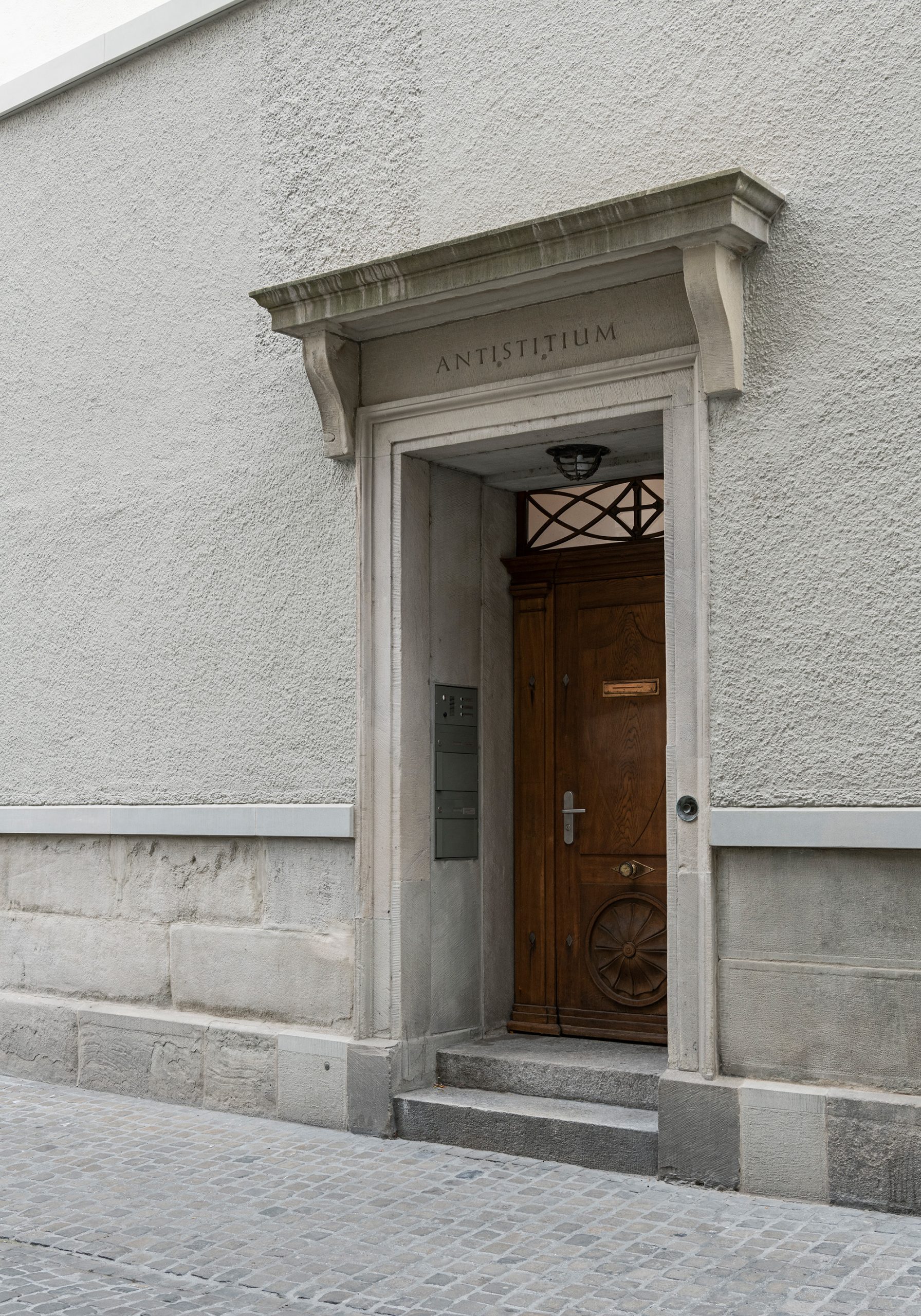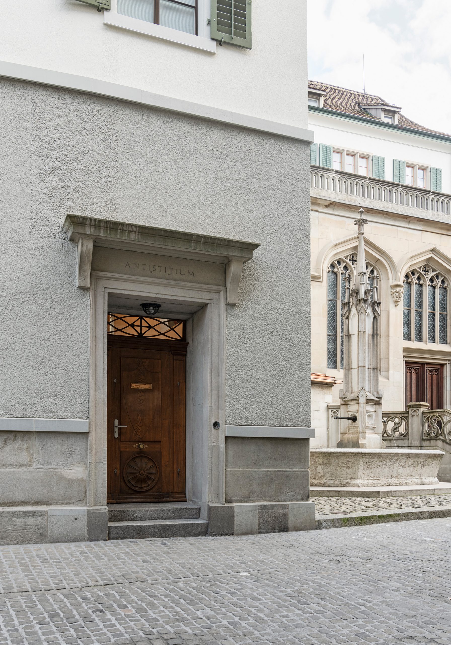 Das Antistitium, Pfarrhaus des Grossmünsters, blickt auf eine ausserordentlich lange und gewichtige Geschichte zurück. Erstmals 1357 erwähnt, beheimatet es bis heute den Pfarrer des Grossmünsters, welcher historisch auch der Vorsteher der Zürcher Stadtkirche war. So bedeutsame Kirchenoberhäupter und Reformatoren wie Zwingli und Bullinger haben hier gelebt und gewirkt. Zwingli’s Neuübersetzung der Bibel dürfte zu wesentlichen Teilen hier geschrieben worden sein. Das Haus wurde mehrfach umgebaut und renoviert, jedoch in seiner barocken Raumstruktur belassen. Im Zuge der aktuellen Arbeiten wird die gesamte Aussenhülle denkmalpflegerisch renoviert und aufgewertet.