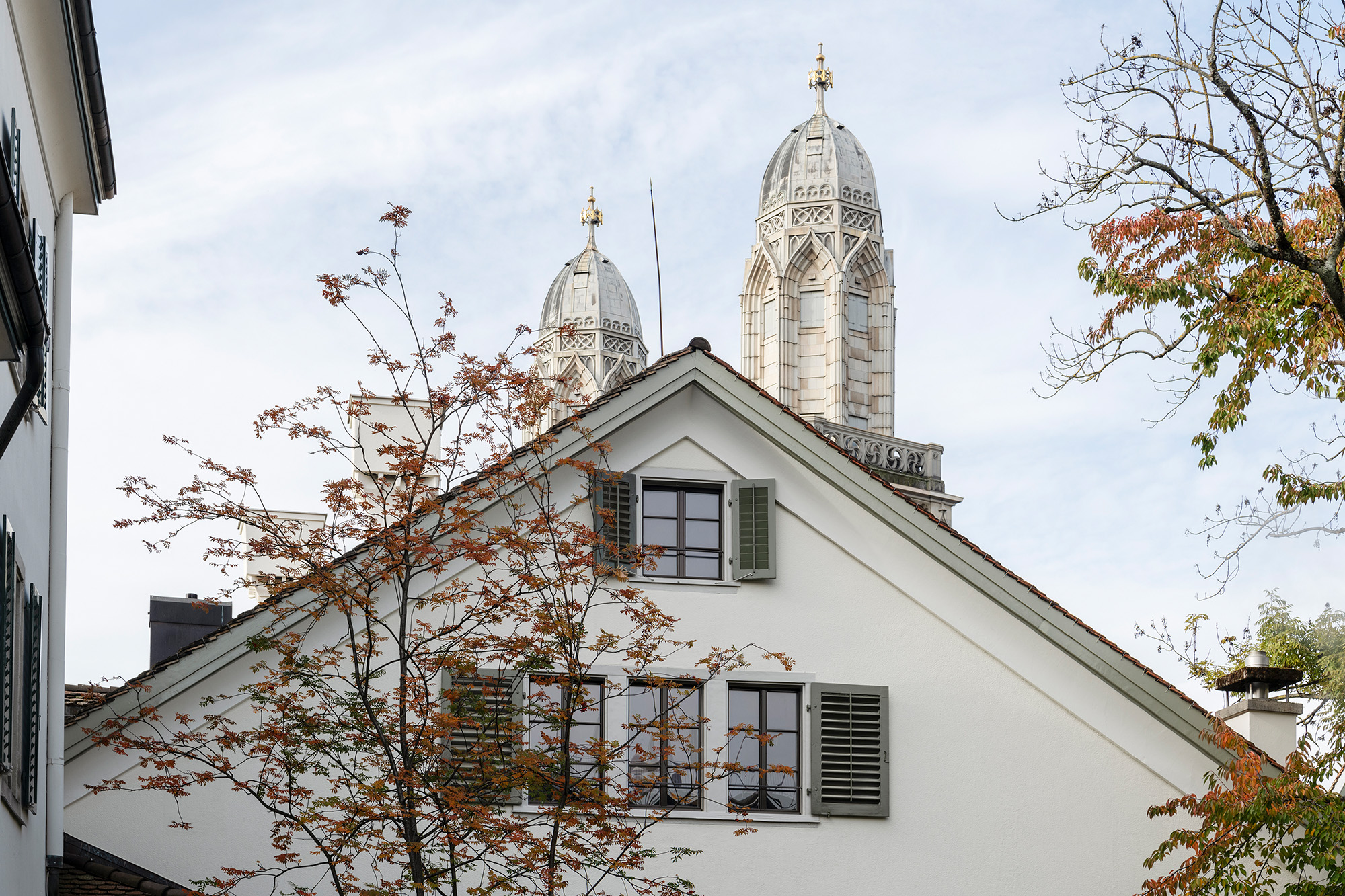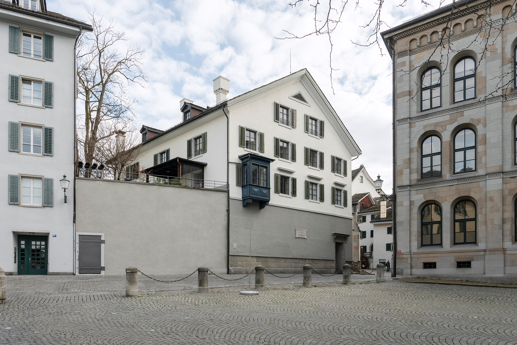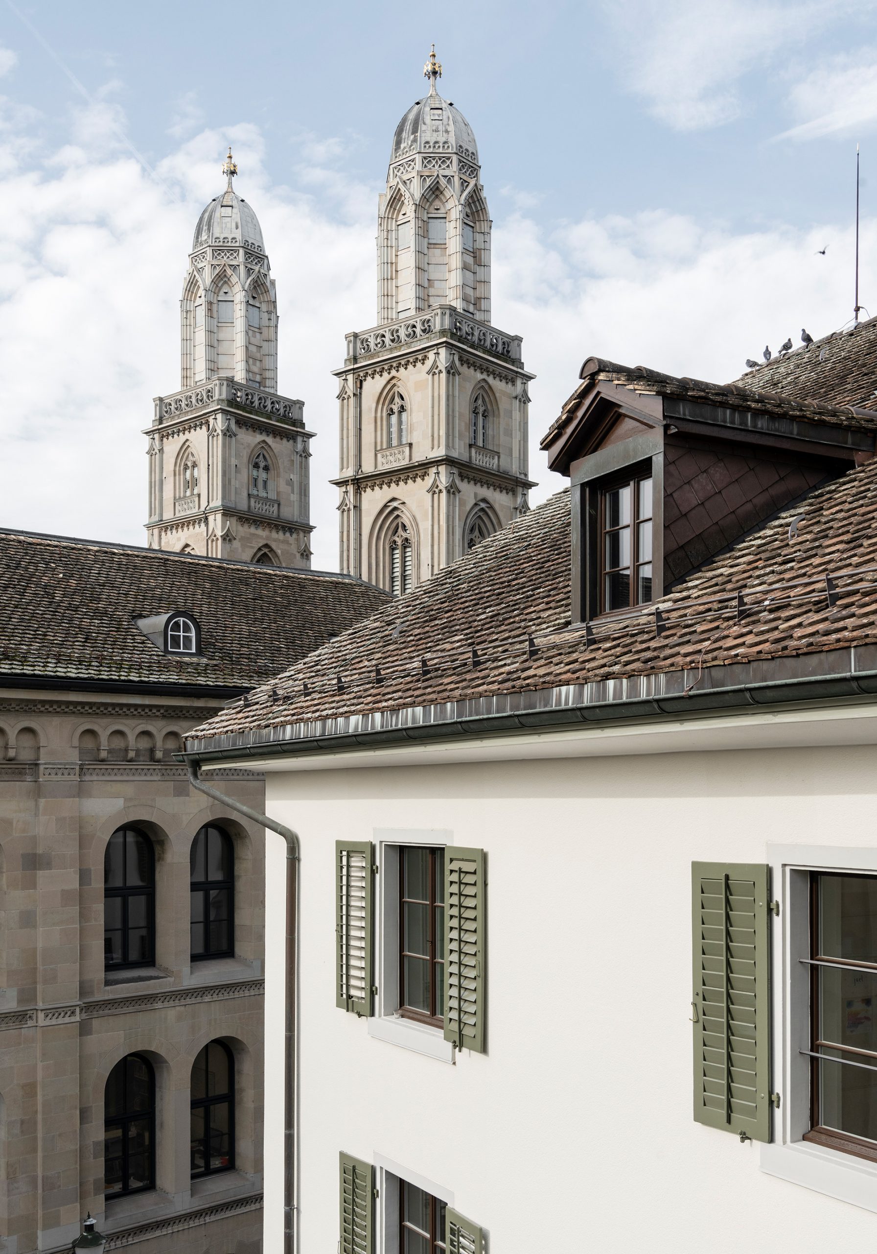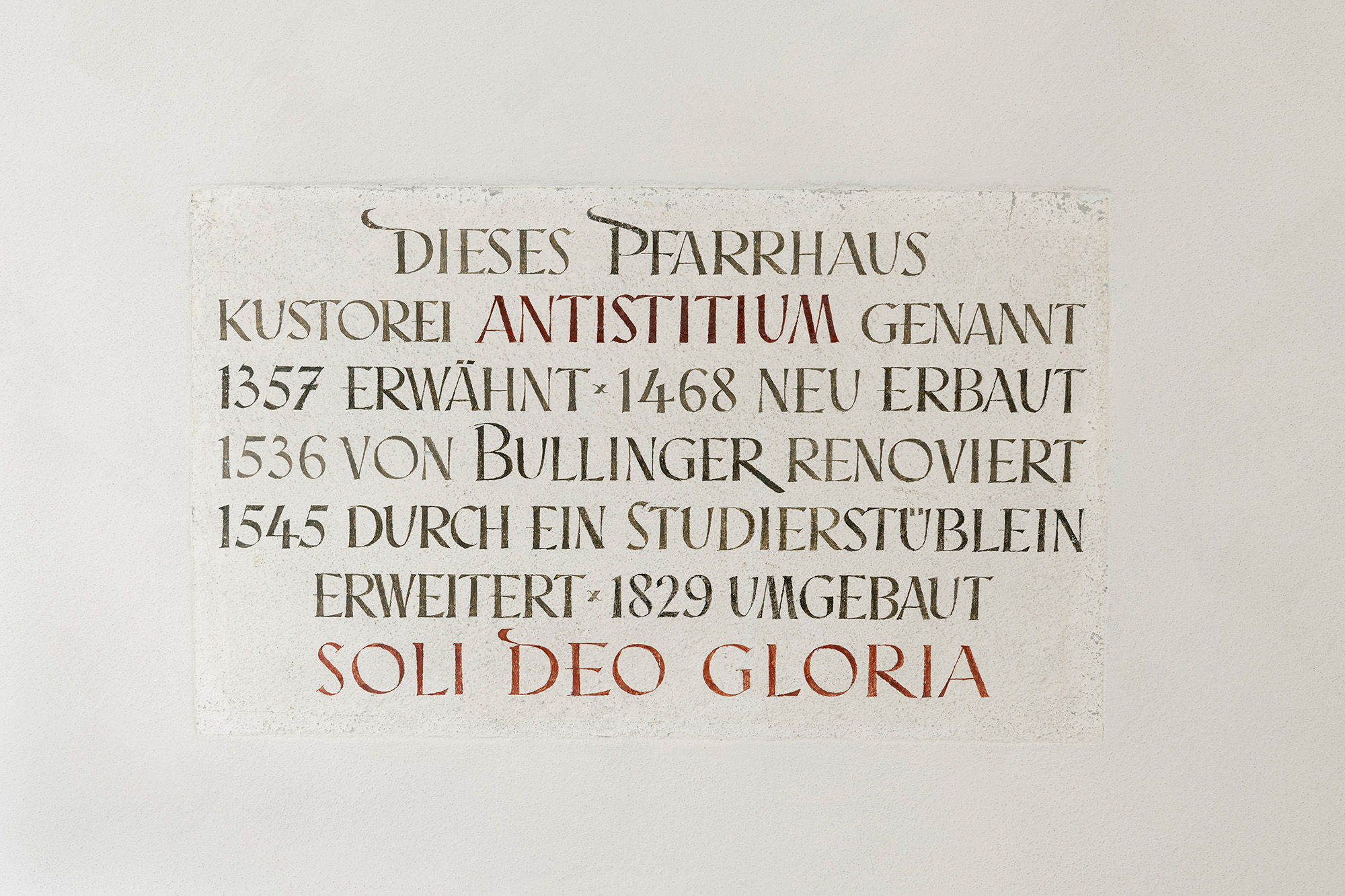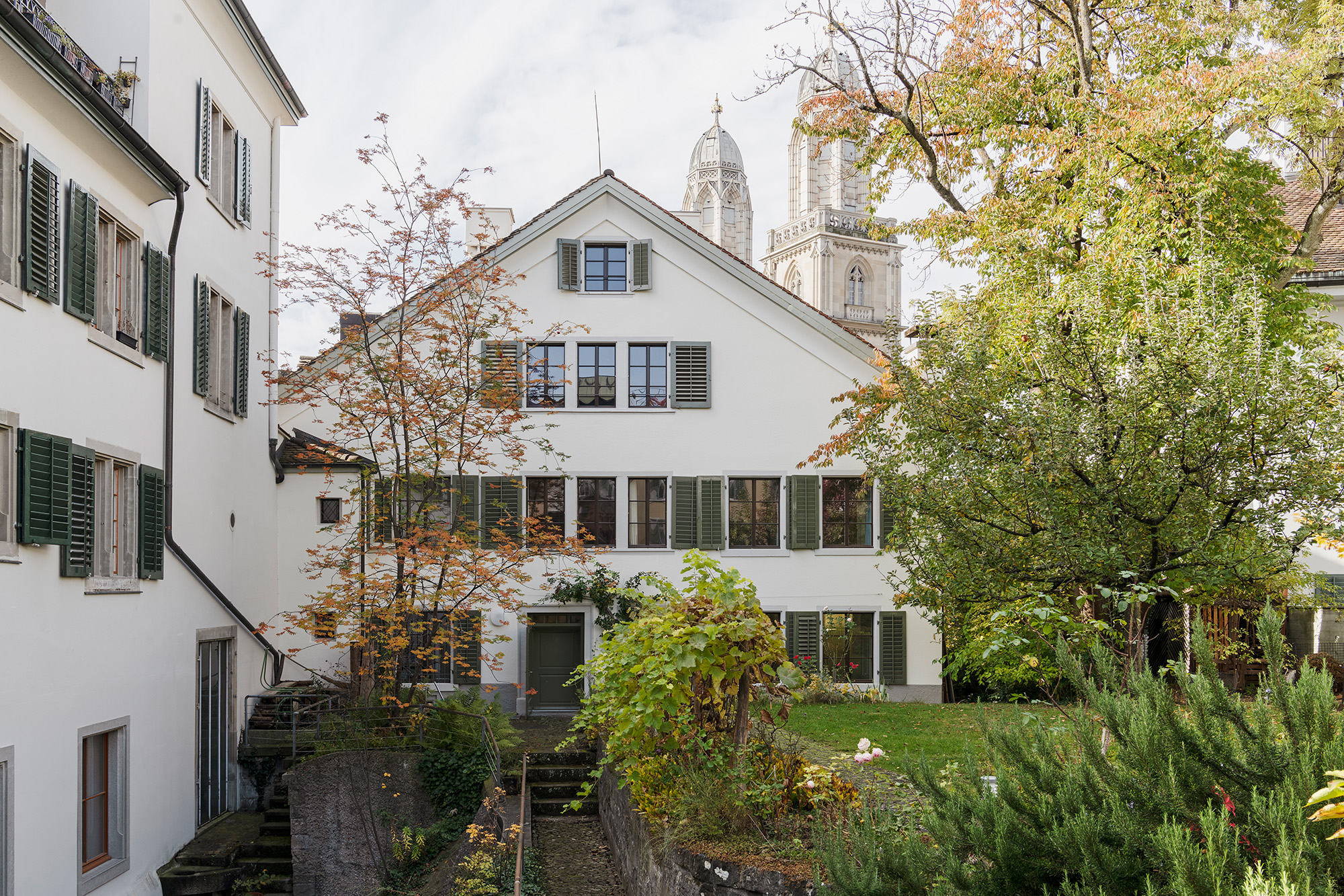 Das Antistitium, Pfarrhaus des Grossmünsters, blickt auf eine ausserordentlich lange und gewichtige Geschichte zurück. Erstmals 1357 erwähnt, beheimatet es bis heute den Pfarrer des Grossmünsters, welcher historisch auch der Vorsteher der Zürcher Stadtkirche war. So bedeutsame Kirchenoberhäupter und Reformatoren wie Zwingli und Bullinger haben hier gelebt und gewirkt. Zwingli’s Neuübersetzung der Bibel dürfte zu wesentlichen Teilen hier geschrieben worden sein. Das Haus wurde mehrfach umgebaut und renoviert, jedoch in seiner barocken Raumstruktur belassen. Im Zuge der aktuellen Arbeiten wird die gesamte Aussenhülle denkmalpflegerisch renoviert und aufgewertet.