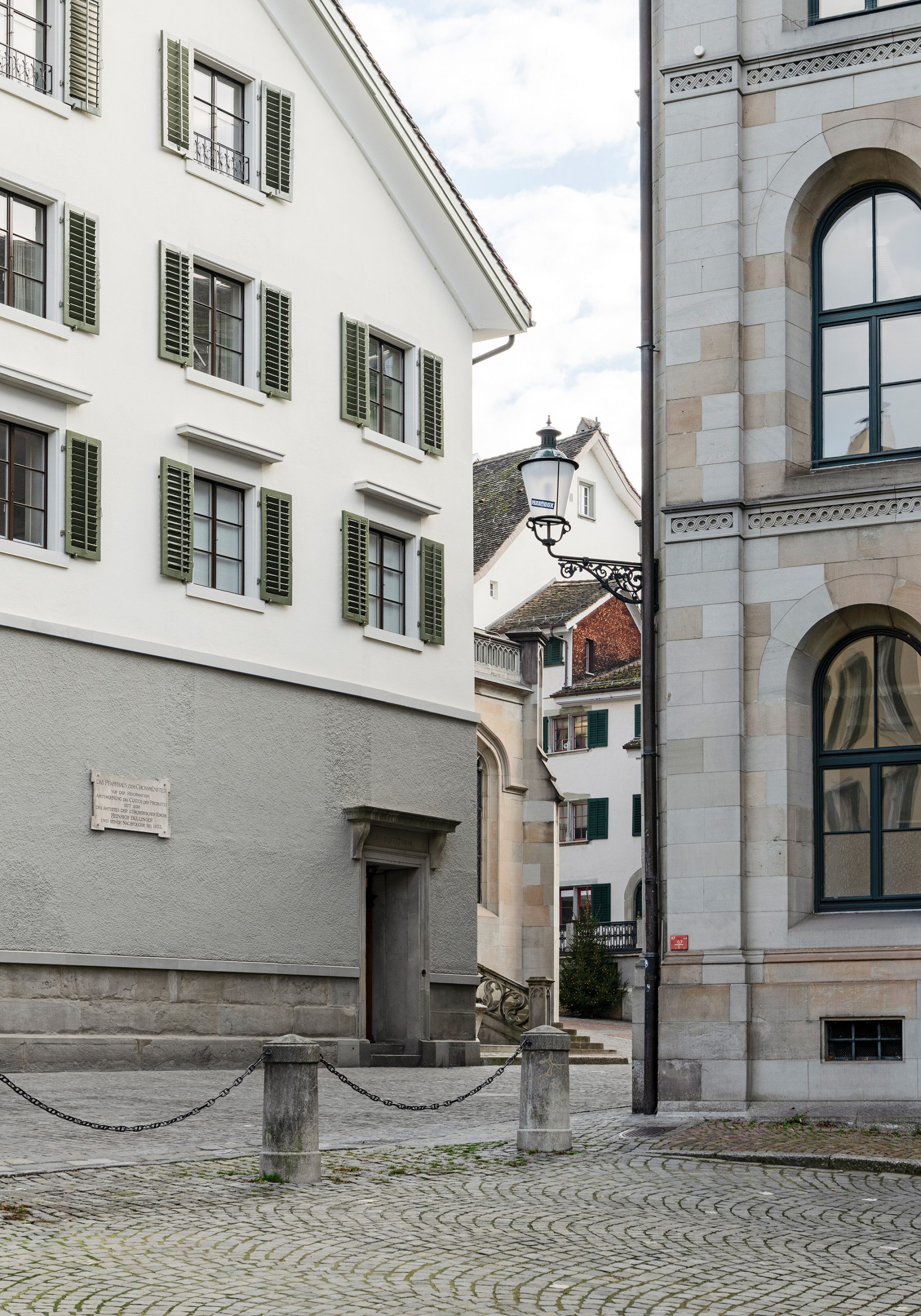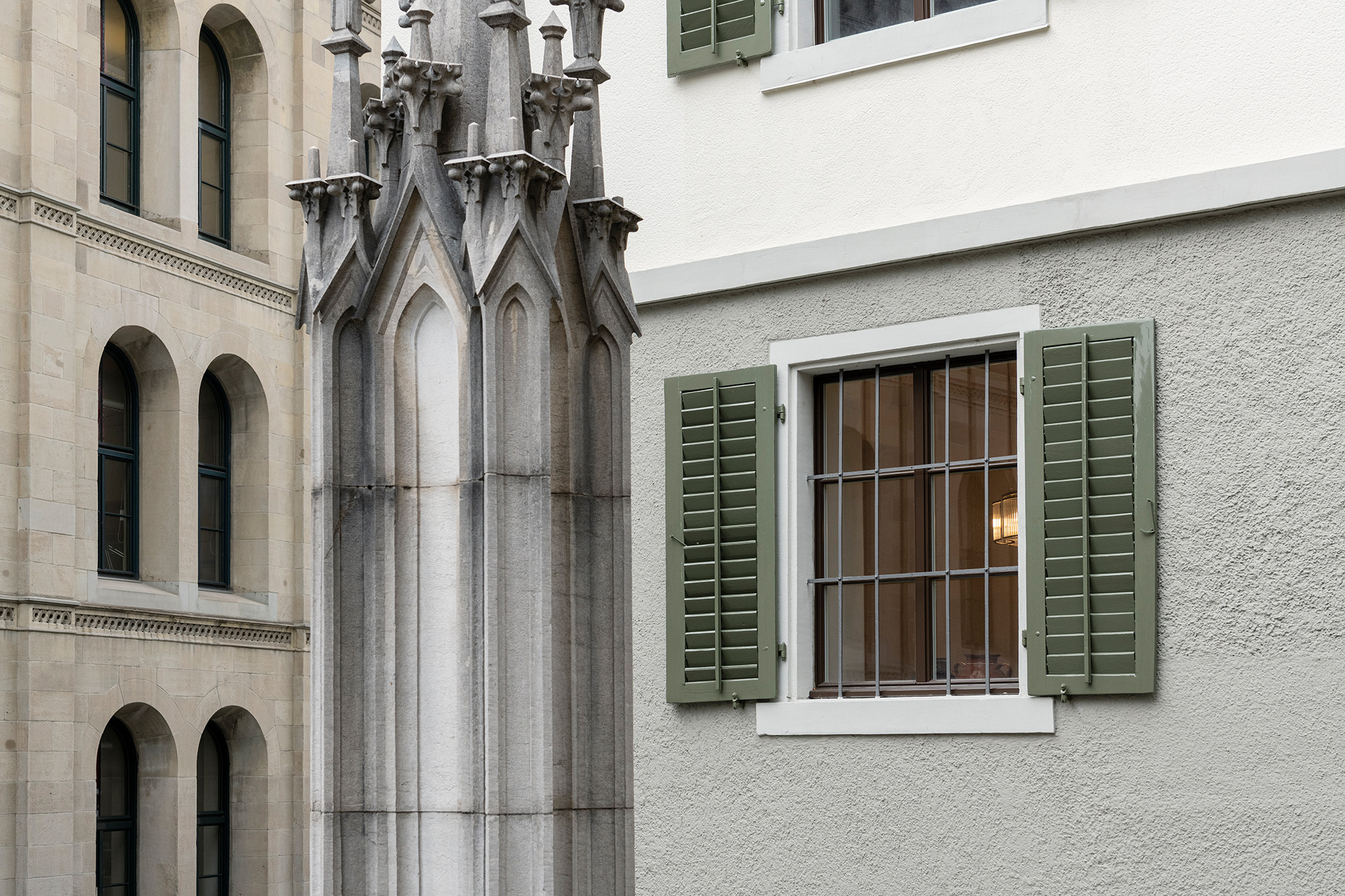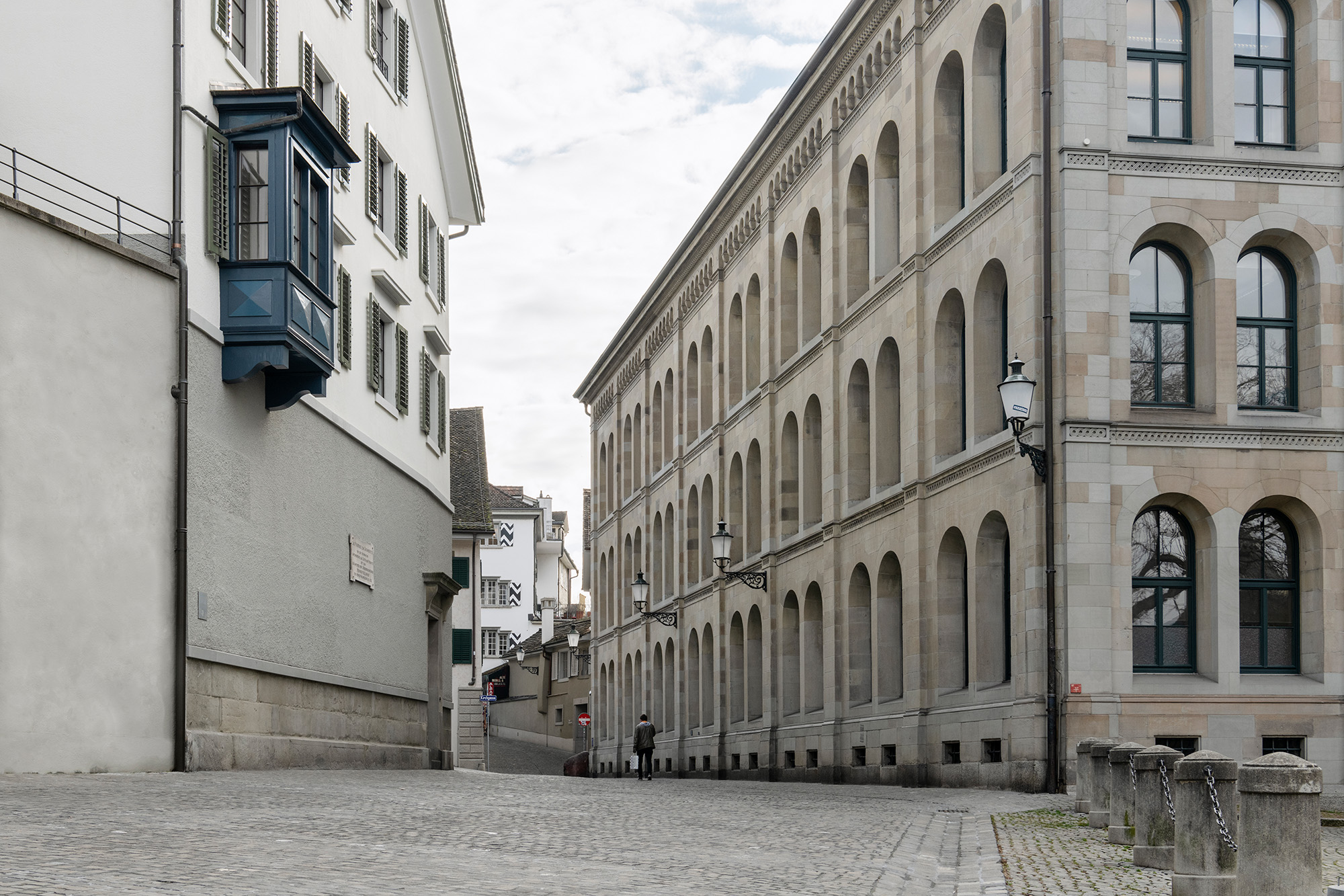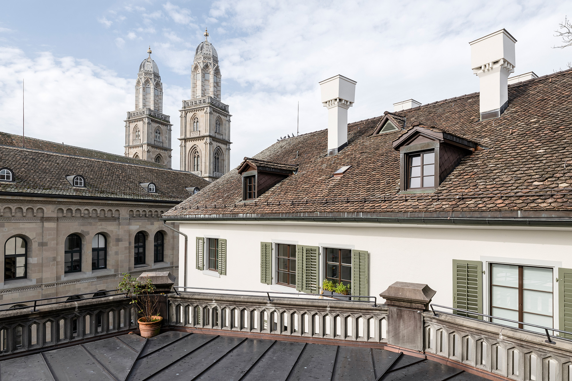 Das Antistitium, Pfarrhaus des Grossmünsters, blickt auf eine ausserordentlich lange und gewichtige Geschichte zurück. Erstmals 1357 erwähnt, beheimatet es bis heute den Pfarrer des Grossmünsters, welcher historisch auch der Vorsteher der Zürcher Stadtkirche war. So bedeutsame Kirchenoberhäupter und Reformatoren wie Zwingli und Bullinger haben hier gelebt und gewirkt. Zwingli’s Neuübersetzung der Bibel dürfte zu wesentlichen Teilen hier geschrieben worden sein. Das Haus wurde mehrfach umgebaut und renoviert, jedoch in seiner barocken Raumstruktur belassen. Im Zuge der aktuellen Arbeiten wird die gesamte Aussenhülle denkmalpflegerisch renoviert und aufgewertet.