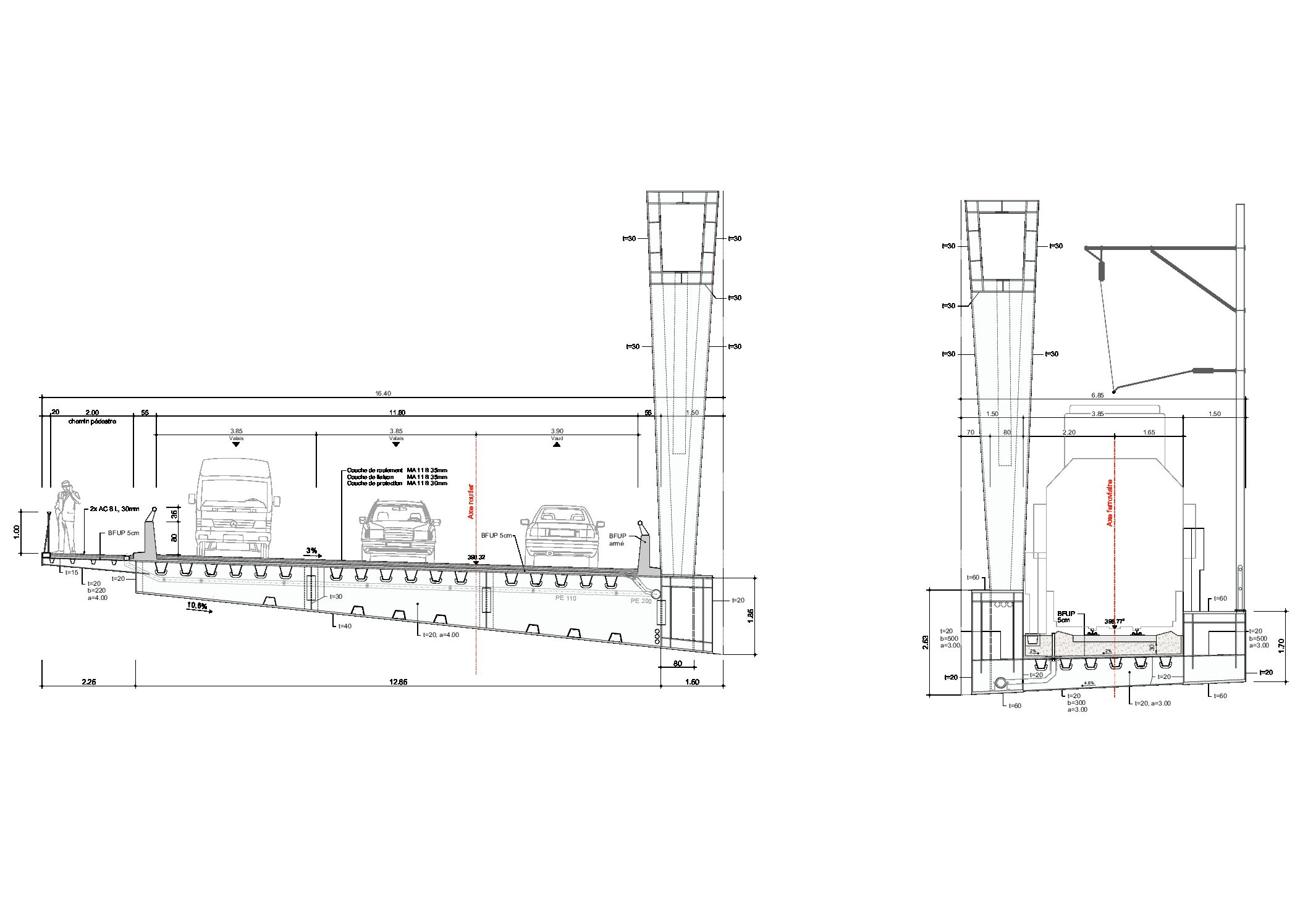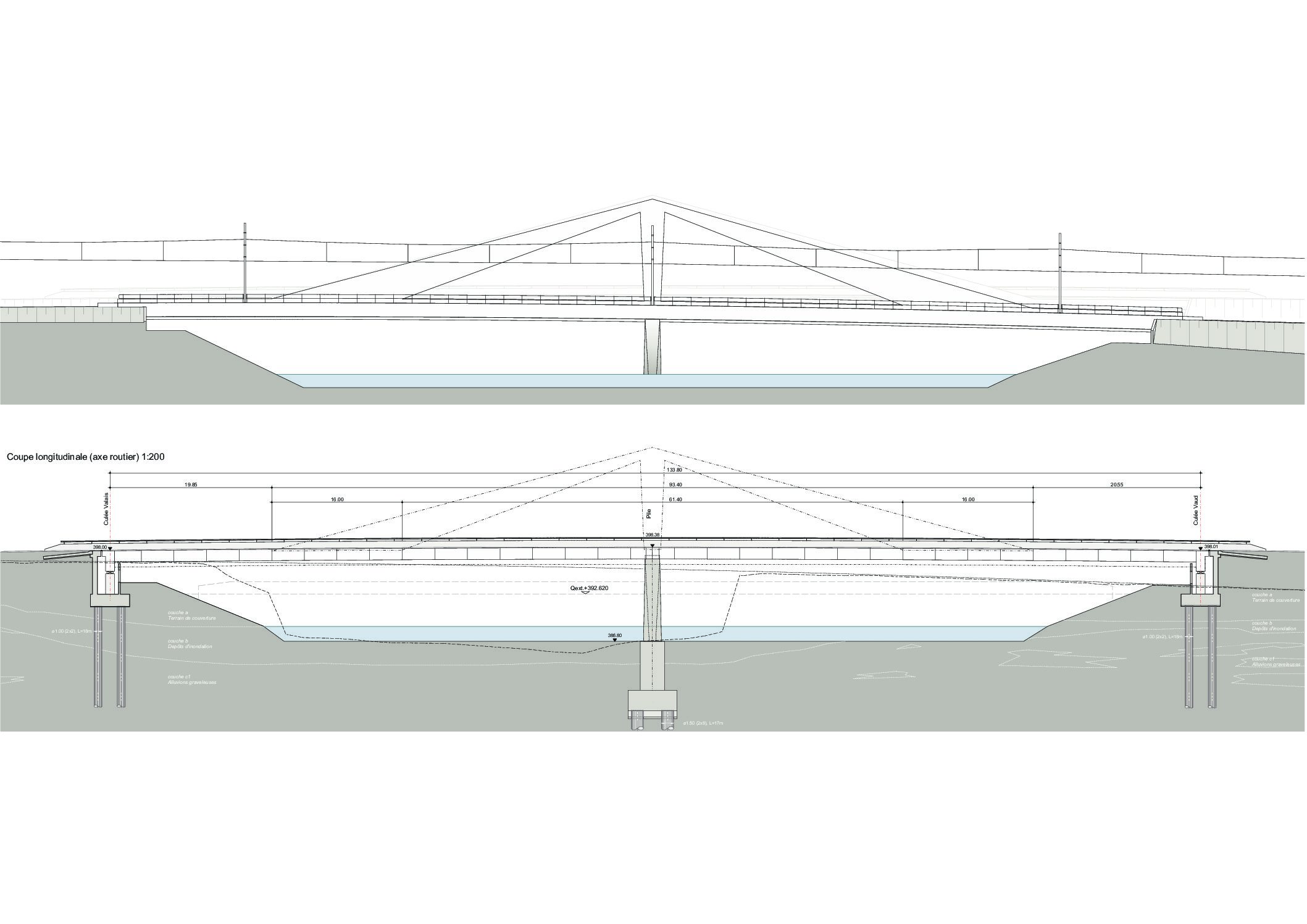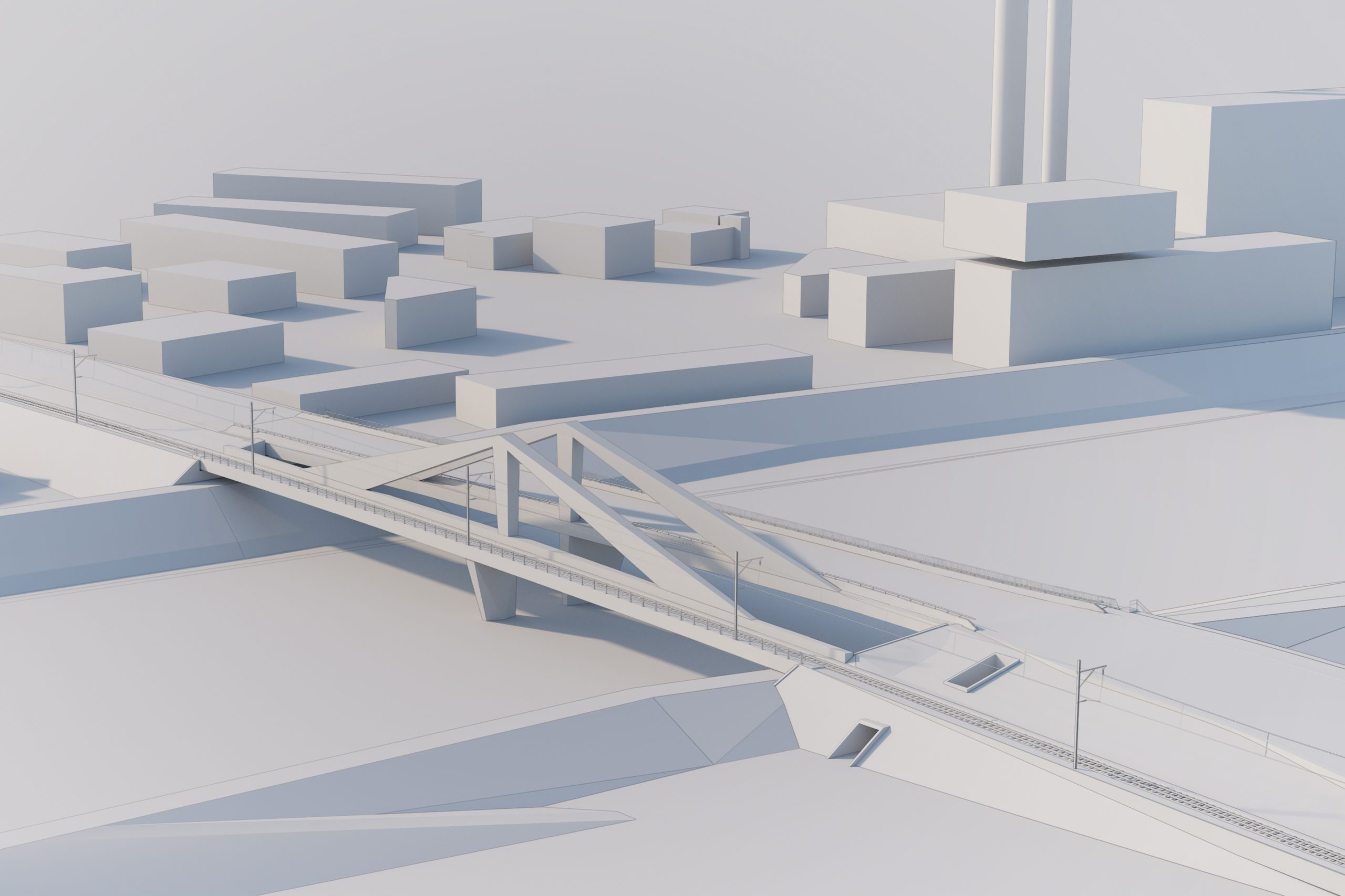 Die beiden ungleich breiten Brücken über die massiv verbreiterte Rhone werten den verkehrstechnisch wichtigen Ort auf, indem die markanten Stahlsegel-Kastentragwerke Rücken an Rücken stehend die Situation selbstbewusst besetzen. Dies führt zur Klärung in einer Umgebung, welche zunehmend unter dem Wildwuchs situativ entstehender Grossgewerbebauten leidet.