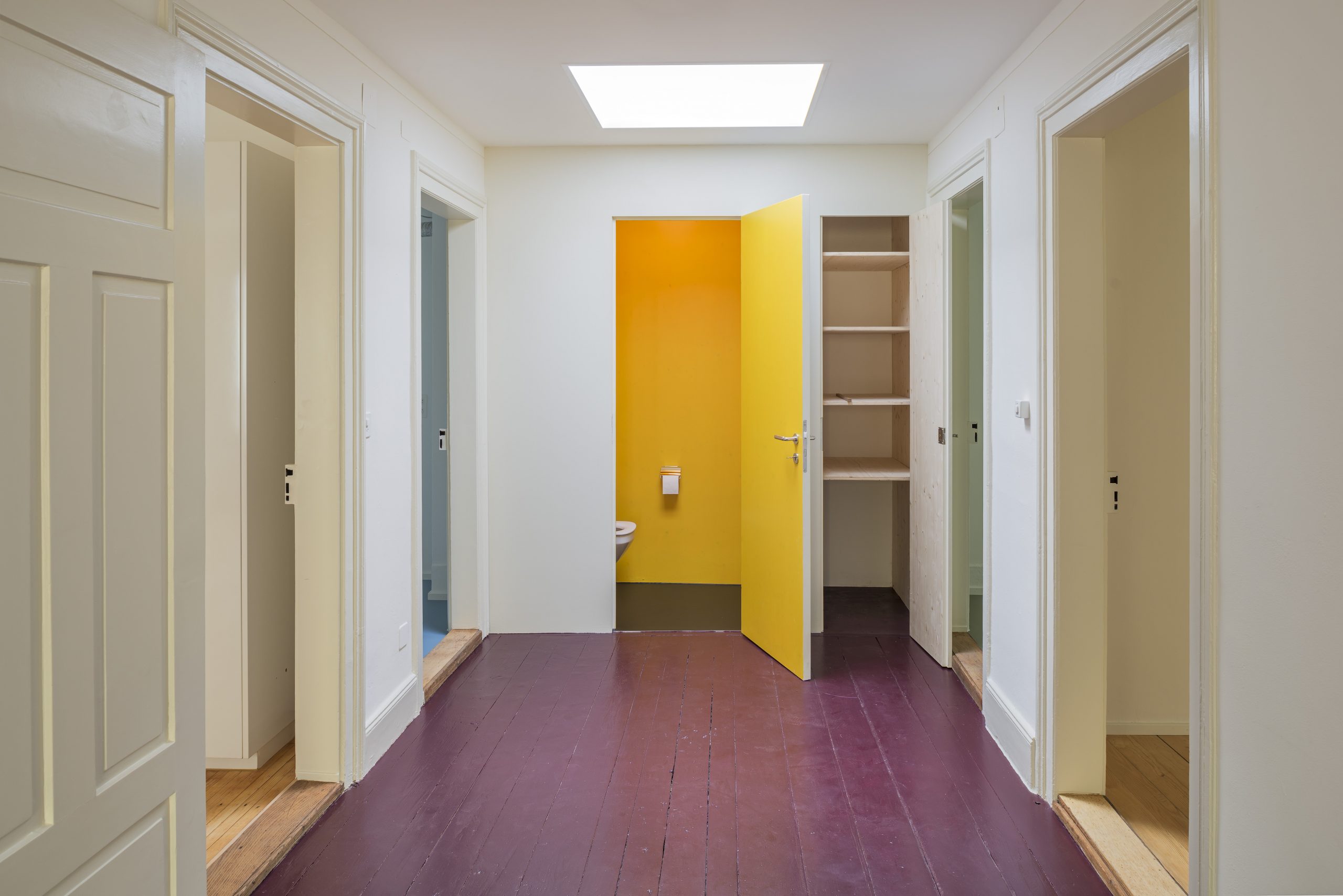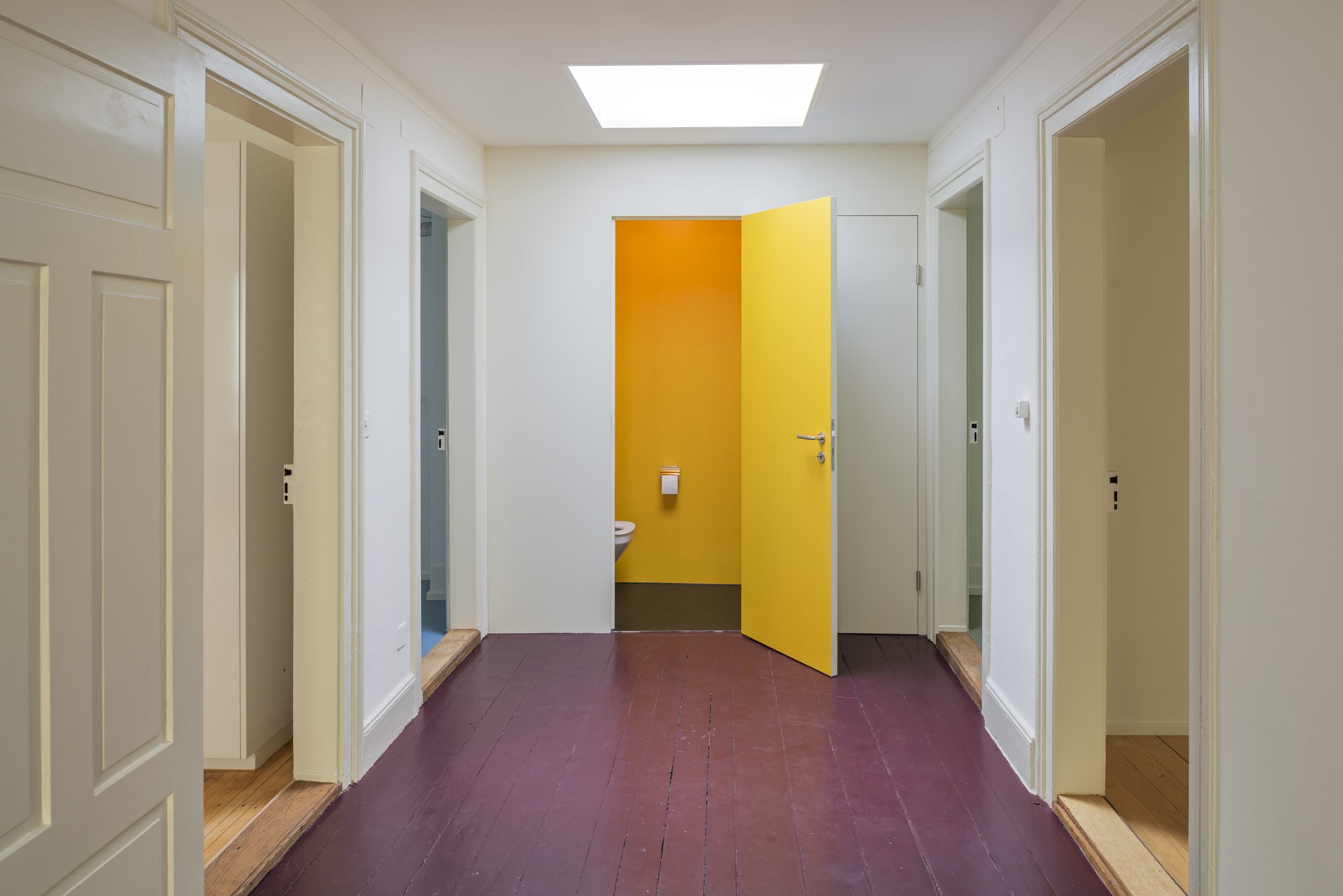 Das zweigeschossige, in einem Hinterhof gelegene und als Wohn- und Atelierhaus genutzte ehemalige Waschhaus wird sanft renoviert und seiner gelassenen Alltäglichkeit behutsam Rechnung getragen. Als wichtiges Mittel wird die Farbgebung eingesetzt, um seine sehr gewöhnlichen Oberflächen zu veredeln und neuen Charme und Wohnlichkeit zu verleihen.
