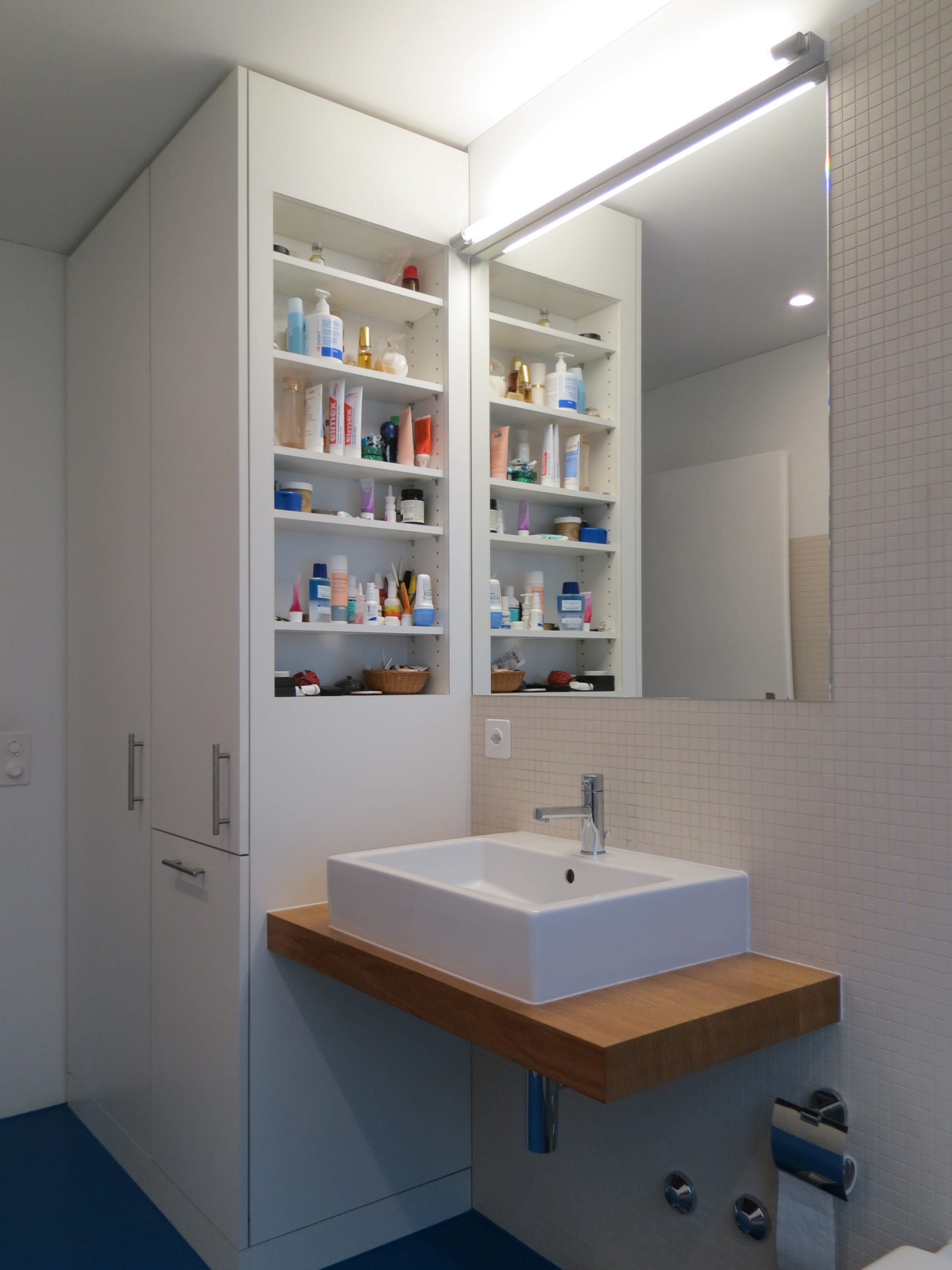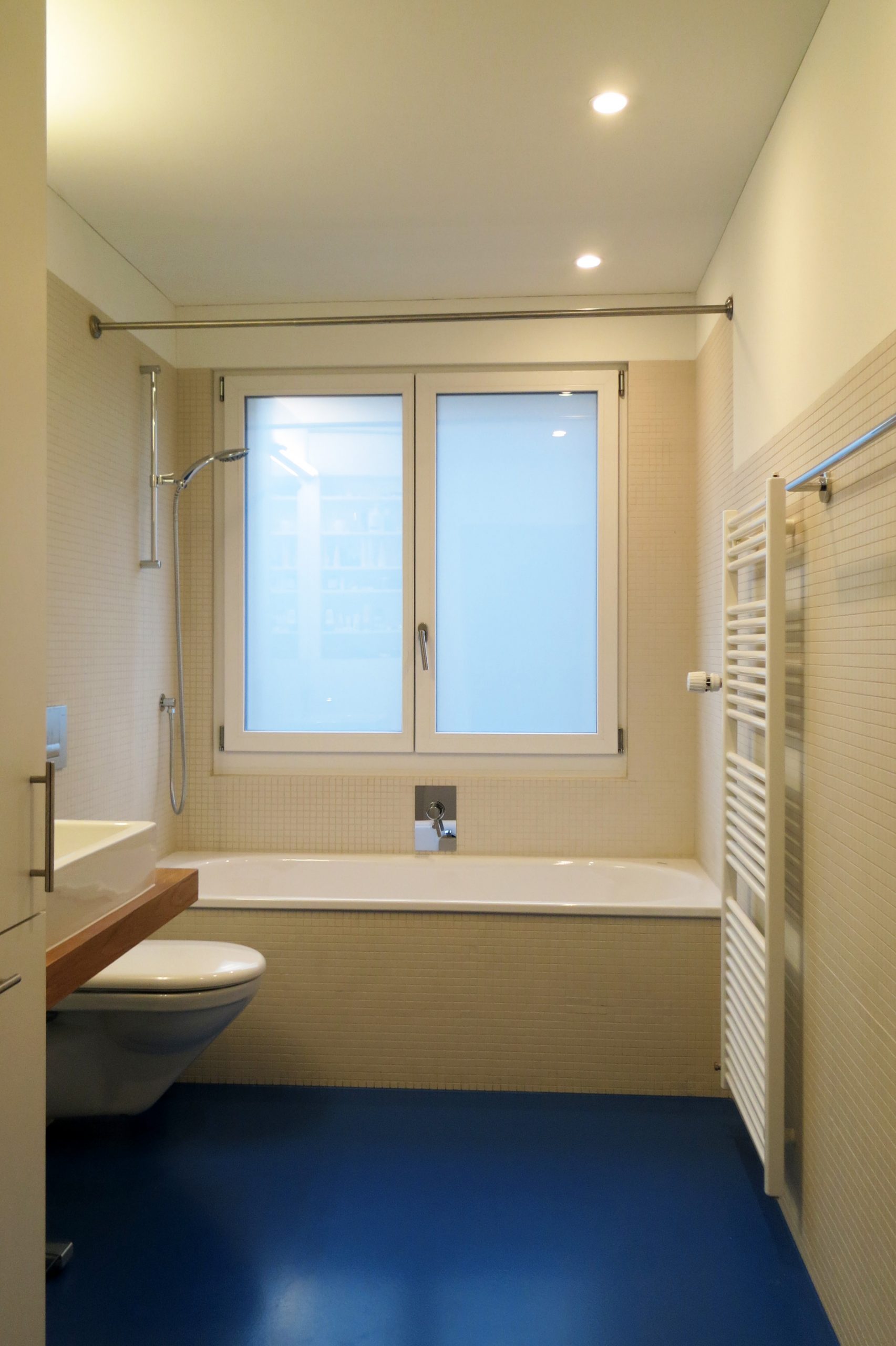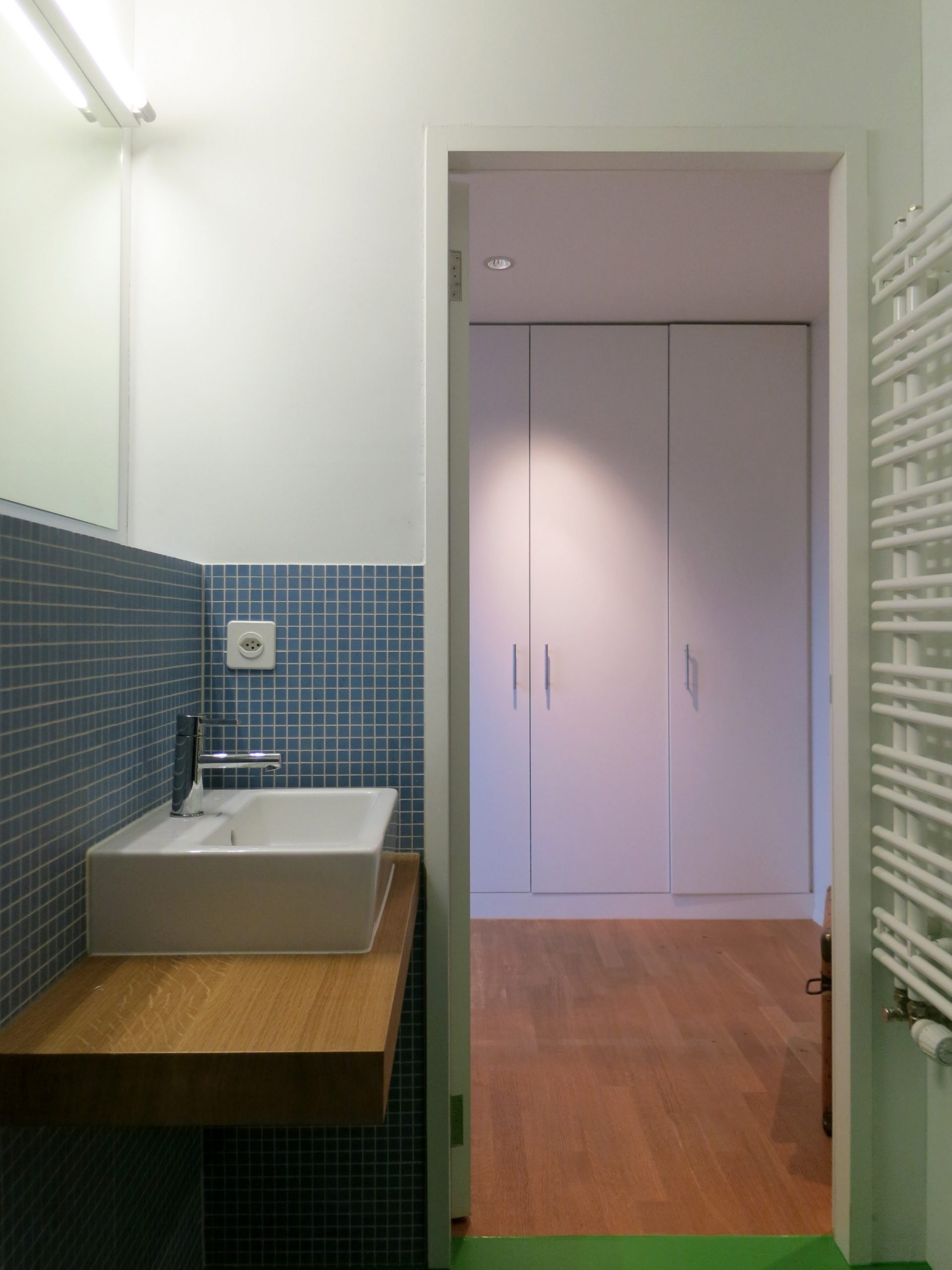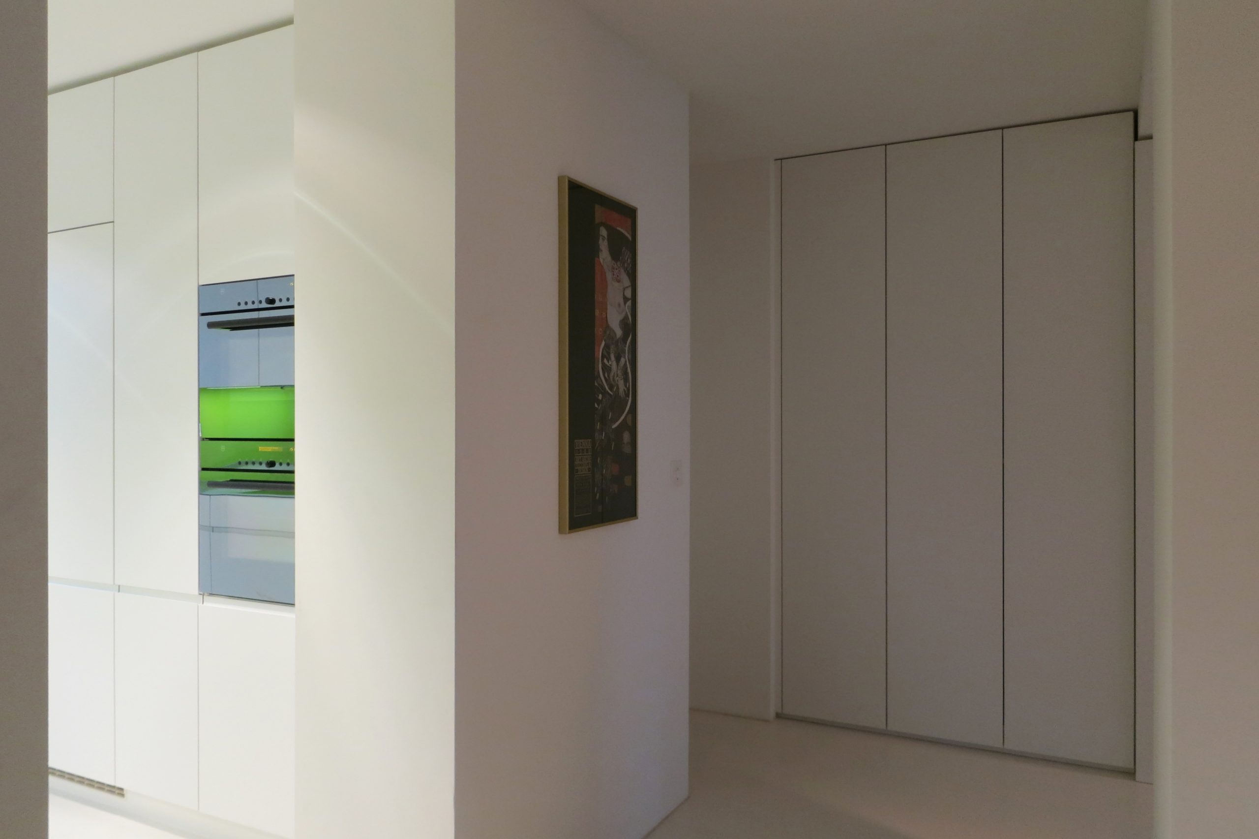 Im Zuge der Zusammenlegung zweier kleiner Geschosswohnungen wurden Küche und Bad umgebaut und eine zusätzliche Nasszelle mit Dusche/WC eingefügt.